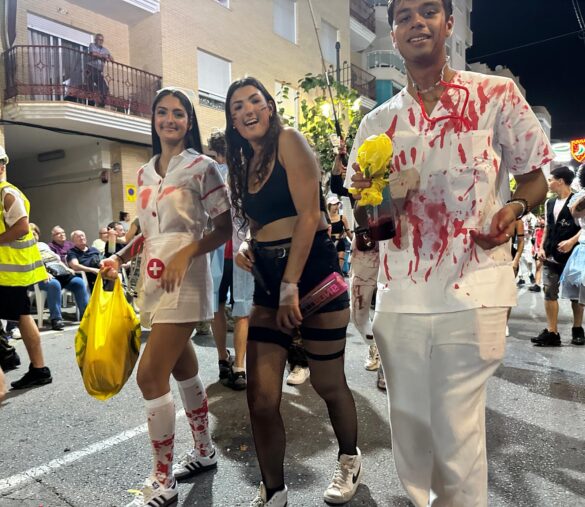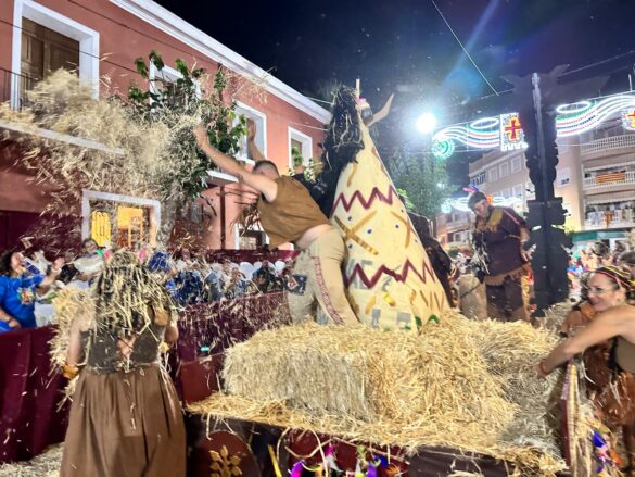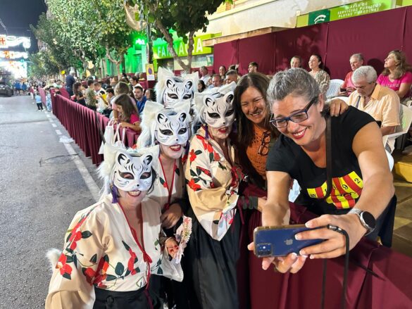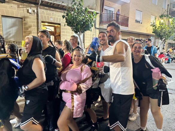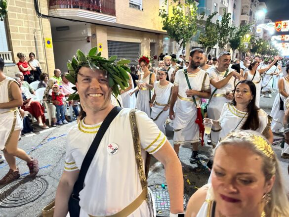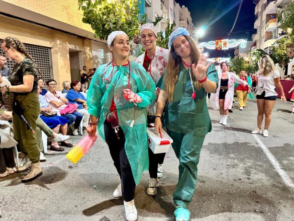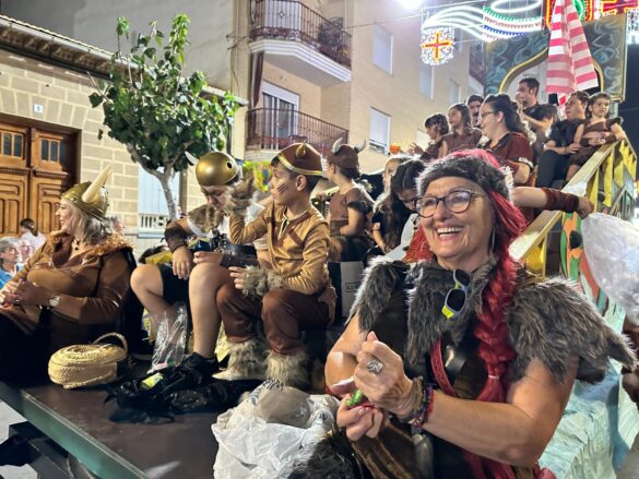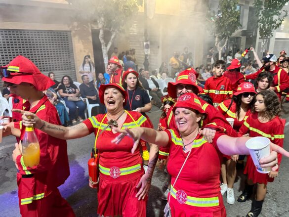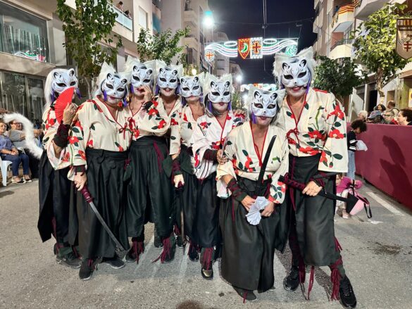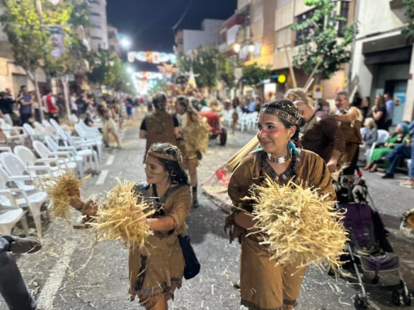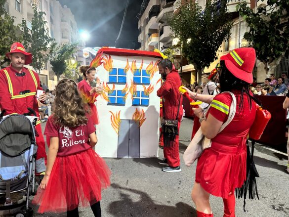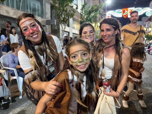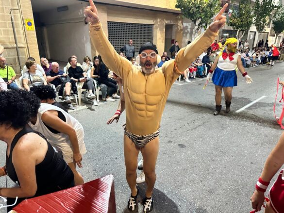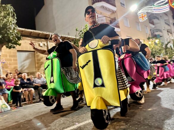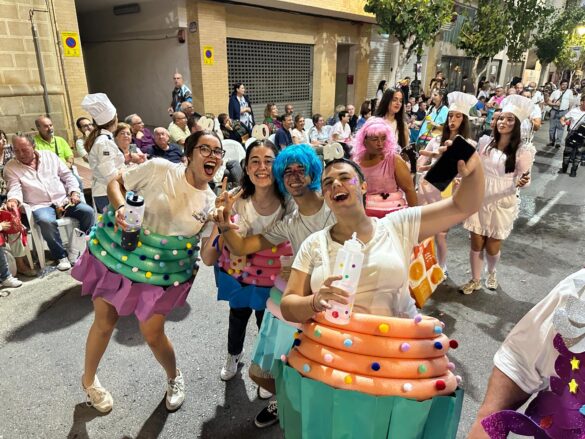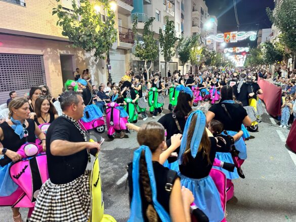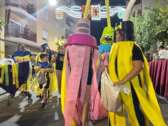 Con música enlatada desfilaron desde “Charlie y la máquina de chocolate” (Marrocs), que daba inicio a la retrata, fueron sucediéndose temáticas, como “Dioses griegos” (Ain Karim), “Bomberos (Pollosos), “Un paseíto en Vespa” (Cavallers de Conquesta), “Fregona” (Cavallers del Temple), “Sombies” (Tercio de Flandes), “Boxeo” (Cristians del Campello), “Tribu comanche” (Jaume I), “Olimpiadas” (Zairíes), “Srek” (Maseros), y “Locomía”, idea de Veterans.