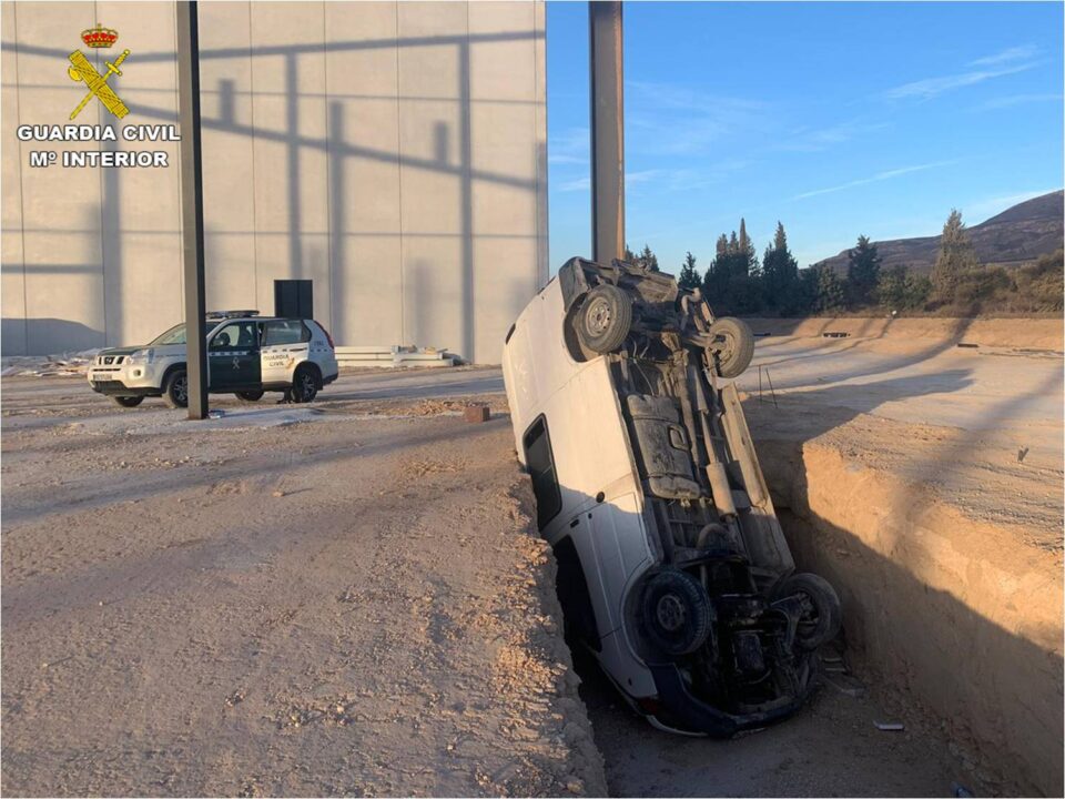 El Equipo Roca de la Guardia Civil de Ibi, la unidad especializada en la lucha contra los robos en el campo, tuvo conocimiento el 21 de febrero de la localización de un vehículo en el interior de un socavón de más de 2,5 metros de profundidad en una zona de obras de la localidad alicantina. Al contener en su interior diversas herramientas susceptibles de ser vendidas como chatarra y haberse producido en una zona rural, se hizo cargo de las gestiones pertinentes al esclarecimiento de los hechos.