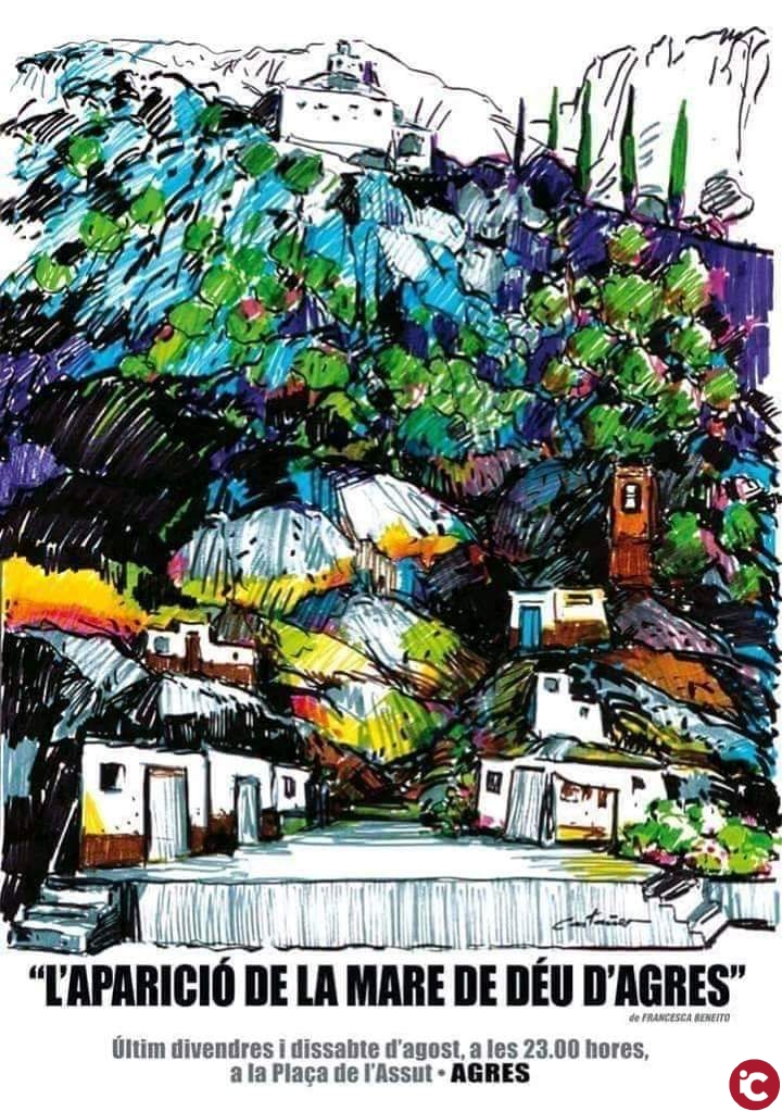 REPRESENTACIÓ TEATRAL DE L’APARICIÓ DE LA MARE DE DÉU D’AGRES, dut a terme pel grup de teatre l’Aparició i sota la direcció de Quike Francés Reig.