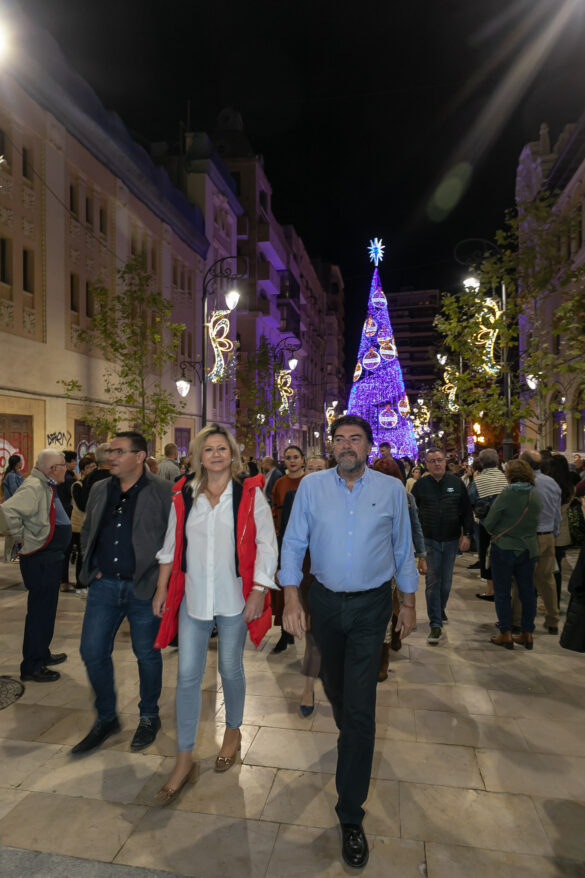 Barcala ha animado “a todos los alicantinos y visitantes a que recorran el centro y los barrios iluminados que llenan de magia y de espíritu navideño la ciudad” y que “llaman a salir a la calle, a las reuniones con familia y amigos y a los reencuentros al tiempo que incentivan las compras en el comercio local y el consumo en la hostelería”.
