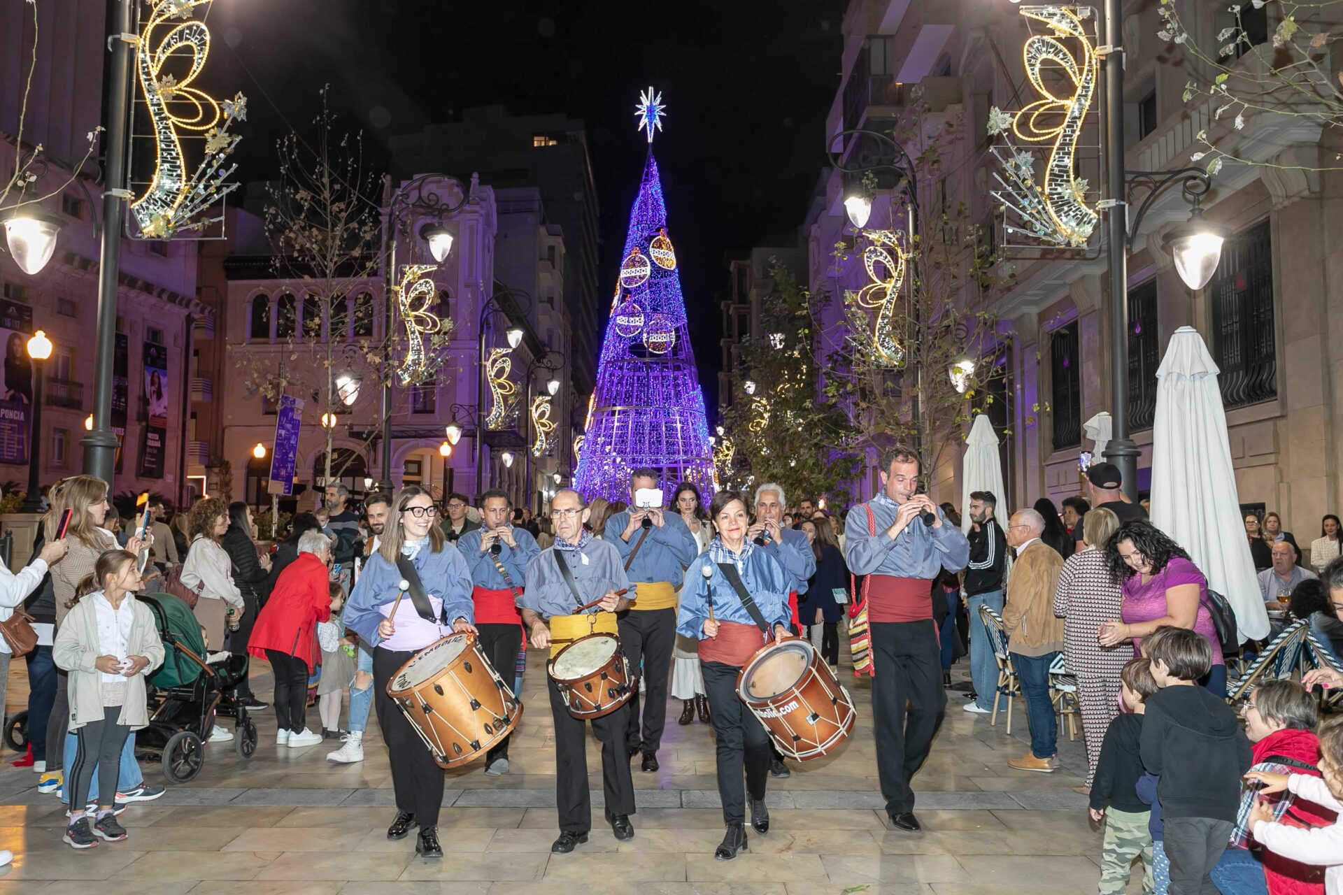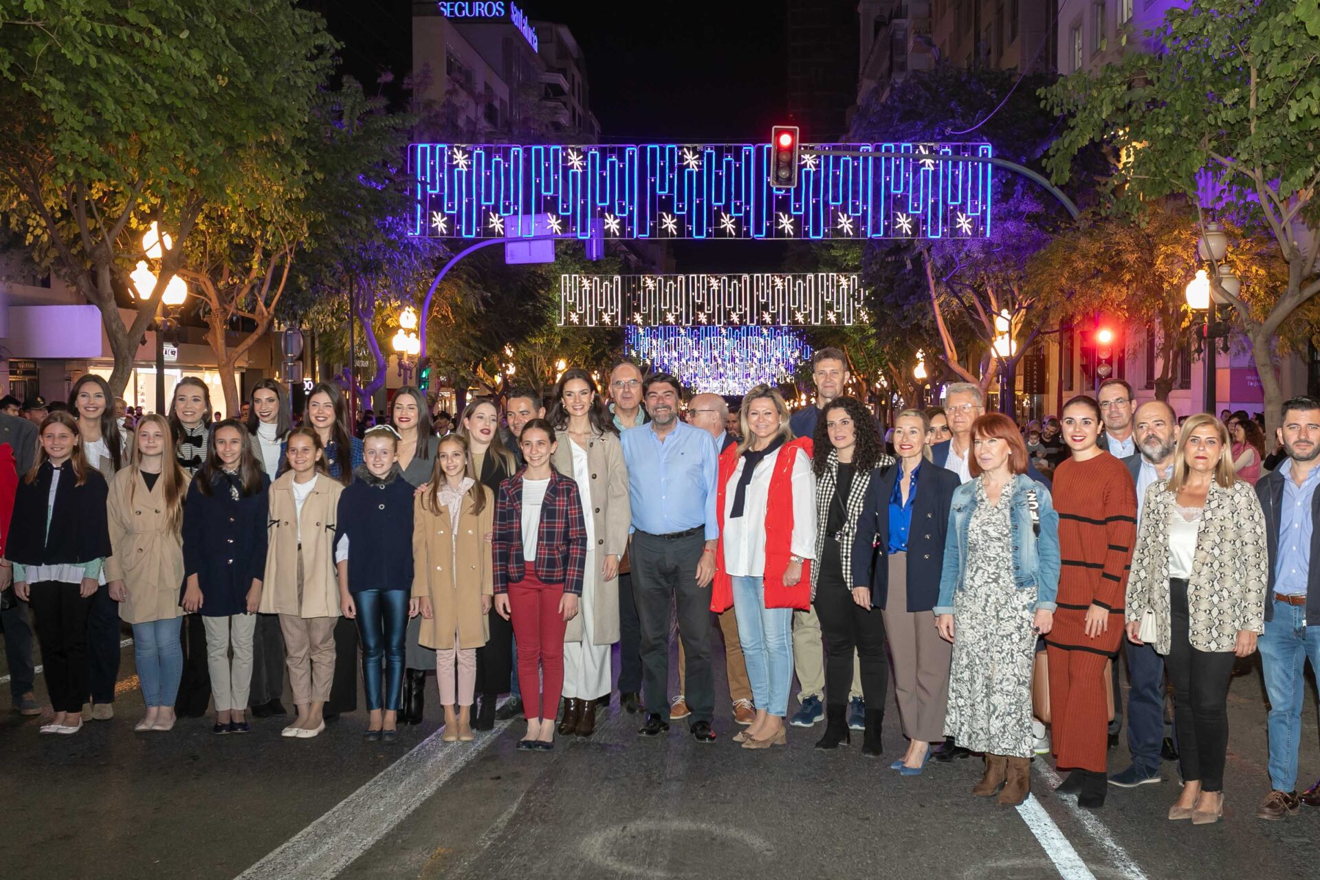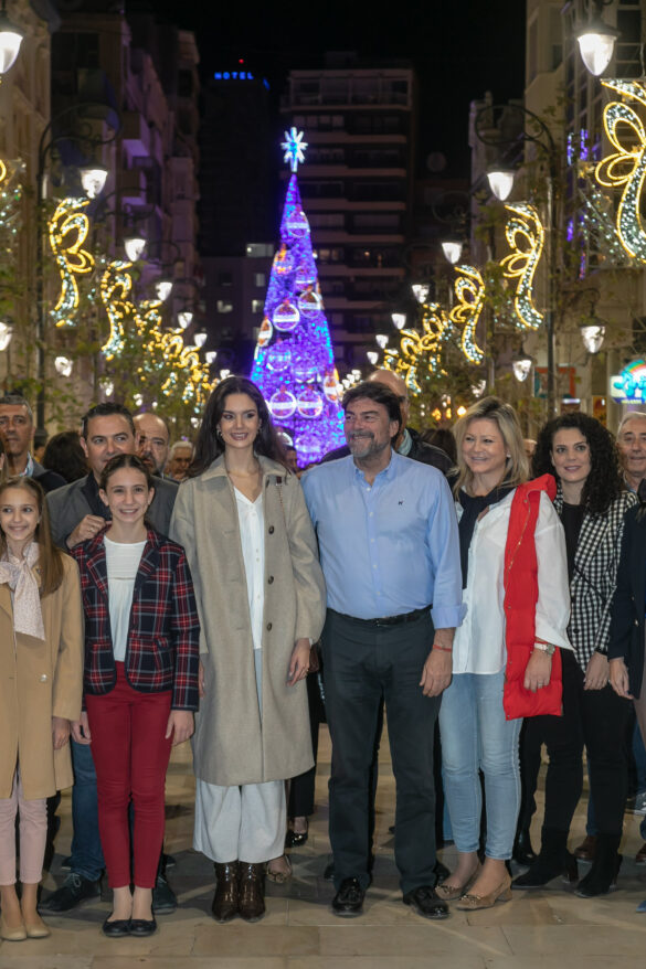 En medio de una gran expectación con cientos de personas como espectadores, el alcalde, Luis Barcala, junto con las Belleas del Foc adulta e infantil, Belén Mora e Inés Llavador, y la concejala de Infraestructuras, Cristina García, han presionado el botón de encendido en la avenida de la Constitución donde se ubica el gran árbol cónico de 18 metros iluminado en tonos blancos, azules y dorados que inaugura la Navidad en este remodelado eje peatonal.
