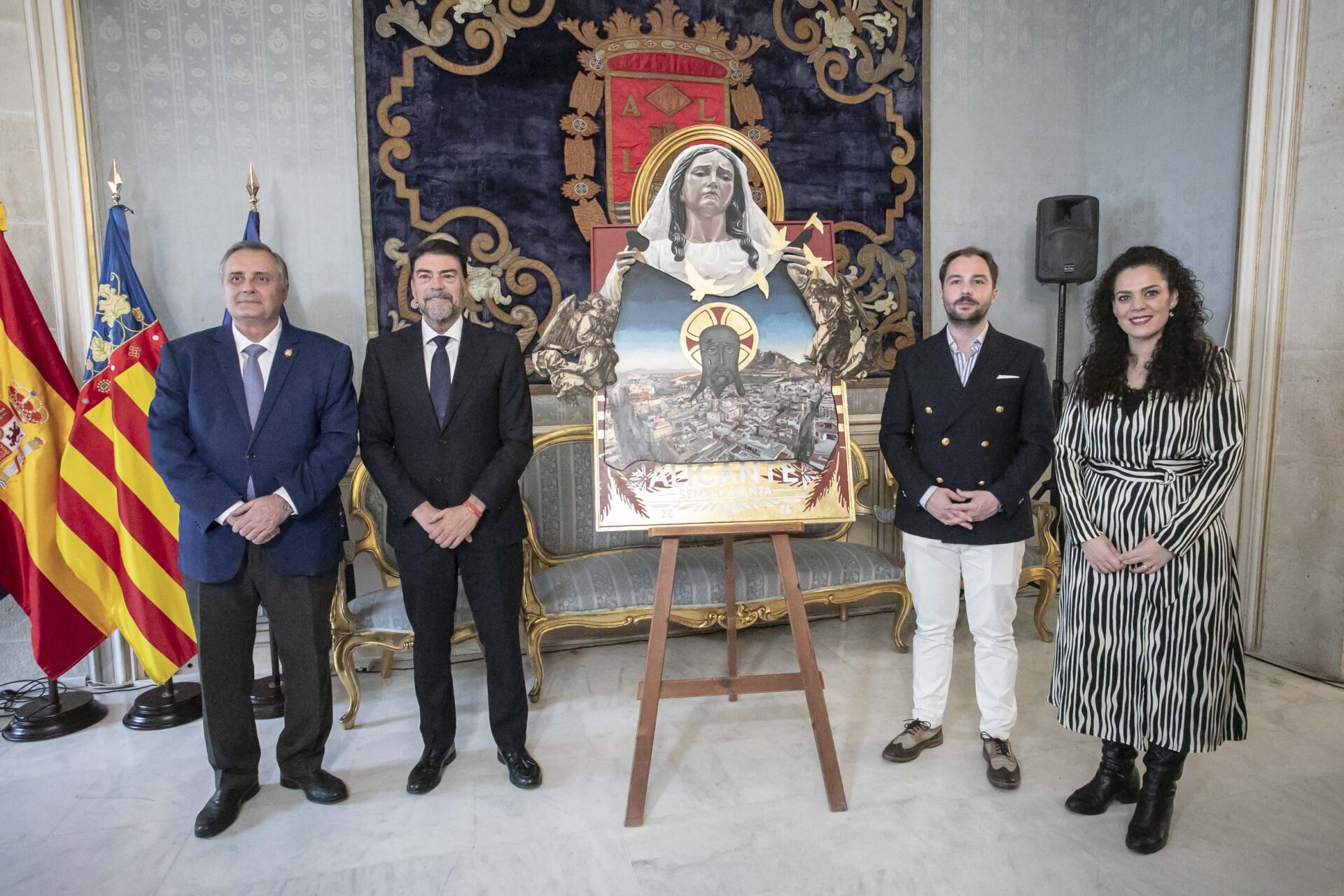 Alfredo Llopis, presidente de la Junta Mayor de Hermandades y Cofradías de Semana Santa de Alicante, ha explicado que “no es una imagen elegida al azar la que se representa en el cartel. Se le presenta al autor el conjunto de las que procesionan en Alicante y él, de acuerdo con su inspiración, elige sin contar las que ya han formado parte de anteriores carteles”. Ésta es una iniciativa del actual Consejo Rector de la Semana Santa. La Virgen de los Dolores Coronada fue la elegida en 2024 por Pedro Castro y el pasado año se decantó por Rafael Muñoz por la Virgen de las Angustias.