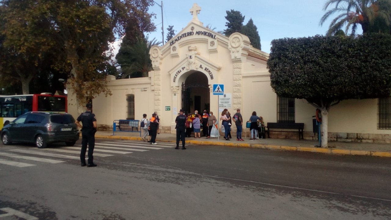 La Policía Local y Protección Civil han establecido más accesos peatonales, con itinerarios de entradas y salidas que han estado controlados y vías de circulación con señalización, así como una mayor seguridad de Policías Locales, asistencia sanitaria con voluntarios de Protección Civil y un operativo de limpieza. El edil de Seguridad ha destacado que “la afluencia de la mañana ha sido buena y alta, sin aglomeraciones, el año pasado tan sólo recibimos unas dos mil visitas por la pandemia, y en esta edición se ha incrementado la afluencia de personas, pero lejos de las cifras que se concentraban tradicionalmente en este señalado día en el camposanto”.