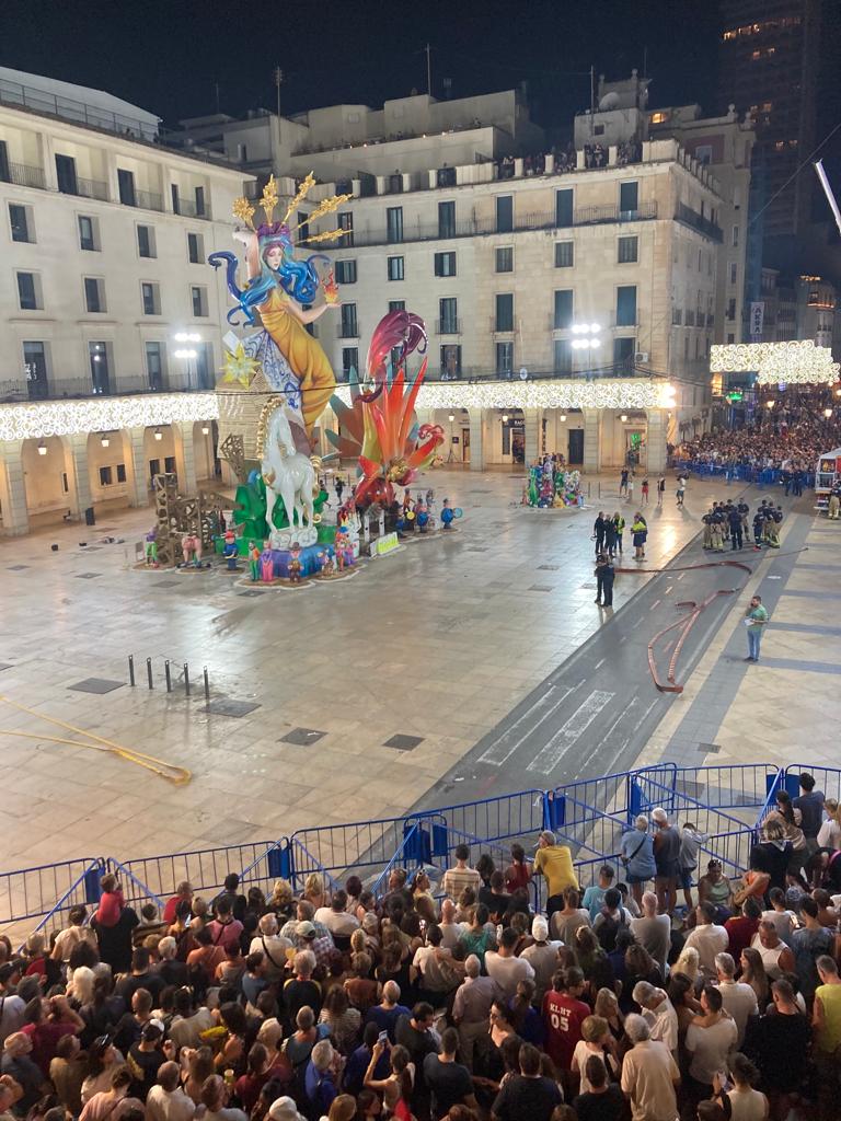 A partir de ese instante han bastado apenas unos minutos para que la Hoguera Oficial infantil haya quedado envuelta en llamas, después de que desde el pasado 18 de junio haya expandido su mensaje de que Alicante está situada en la Cota 0 al nivel del mar.