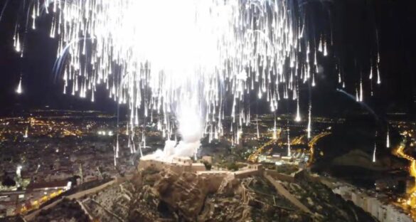 Pirotecnia Hermanos Ferrández dispara una espectacular Palmera desde el Castillo de Santa Bárbara compuesta por más de un millar de cohetones imperiales