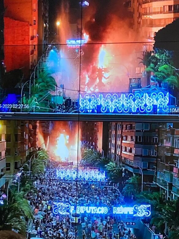 Alicante, a 25 de junio del 2023. Alicante ha celebrado una Nit de la Cremà muy segura que ha sido seguida de forma masiva en toda la ciudad en unas Hogueras de récord con un lleno total de turistas y visitantes.