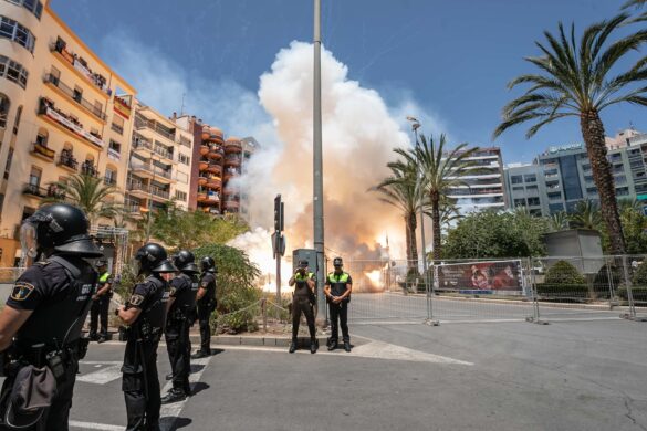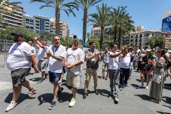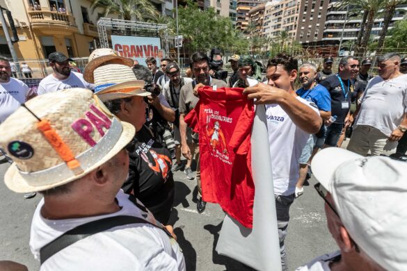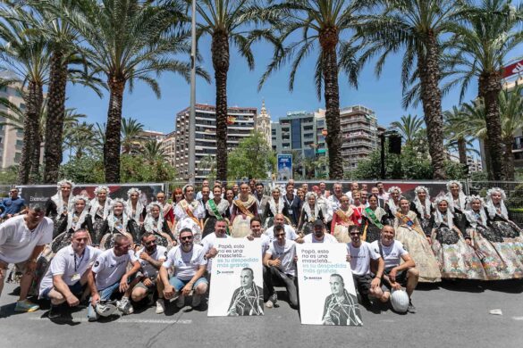 Alicante ha cerrado este martes el 36º Concurso de Mascletàs, en la Plaza de los Luceros, con una bandera de humo negro como homenaje póstumo al pirotécnico Pedro Luis Sirvent Gil. El disparo de la pirotecnia Hermanos Sirvent, con 150 kilos NEC, ha durado 6′ 31» minutos y el pico máximo de decibelios ha alcanzado los 127,6. La Bellea del Foc, Adriano Vico, se ha sumado al reconocimiento con la lectura de un texto en el que ha destacado «la forma que tenía Pedro Luis de unir a las personas a través de sus mascletàs. Las Belleas del Foc adulta e infantil -Valentina Tárraga- le han dedicado el disparo: ‘Senyor pirotècnic Pedro Luis Sirvent… Pot començar la mascletà’ y las peñas ‘Orangutanes’, ‘Pai, Pai’ y ‘Rincón de Paco’ han entregado una pancarta de recuerdo a sus hijos. Adrián Sirvent, el mayor, ha sido paseado en hombros al término de la exhibición pirotécnica.