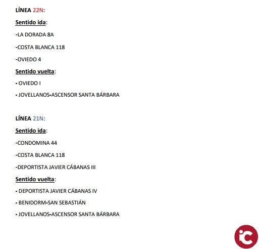 Las paradas intermedias pueden ser utilizadas por todos los viajeros del transporte público y van a estar operativas durante el horario nocturno de 23,30 horas a 06,30 horas, los viernes, sábados y vísperas de festivos en las líneas nocturnas: 03N (Plaza de la Luna – Villafranqueza); 23N (Plaza del Mar – San Juan – Mutxamel) y 24N (Plaza del Mar – San Vicente), 21N (Alicante-Playa de San Juan-El Campello), y 22N (Alicante-Cabo de las Huertas-Playa de San Juan).