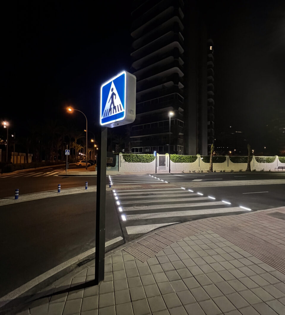 Alicante estrena sus primeros pasos de peatones inteligentes, concretamente están situados en la calle Irlanda, en la Playa de San Juan, y se han instalado por el Ayuntamiento en las obras de reurbanización de la zona que acaban de finalizar, con el objetivo de garantizar una mejor movilidad peatonal y aumentar la seguridad vial, dotando de unas placas lumínicas en el suelo a los pasos.