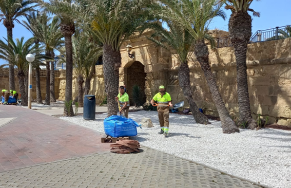 Desde el servicio municipal de Parques y Jardines ‘Brota Alicante’ se ha puesto en marcha una actuación de mejora paisajística en la isla de Tabarca, dirigida a mejorar los parterres y espacios ajardinados mediante la plantación de especies resistentes al viento -habitual en la isla- y mediante la distribución de grava de color blanco decorativa para mejorar la imagen y para afianzar la sustentación de la tierra.