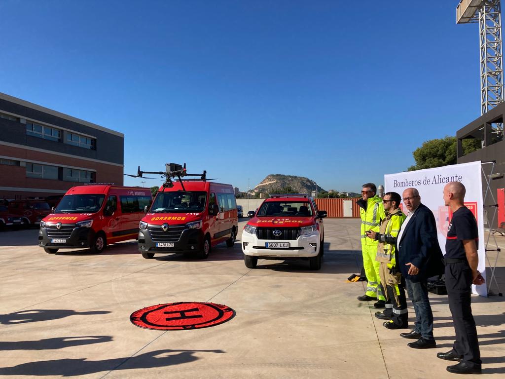 El concejal de Seguridad, José Ramón González, junto con el jefe del SPEIS, Carlos Pérez, han presentado esta mañana en el parque de Bomberos municipal Idelfonso Prats las nuevas compras destacando que “es una gran inversión de la que nos sentimos muy orgullosos para hacer de Alicante una ciudad más segura y eficaz, logramos incorporar a Bomberos los medios más avanzados y de última generación».