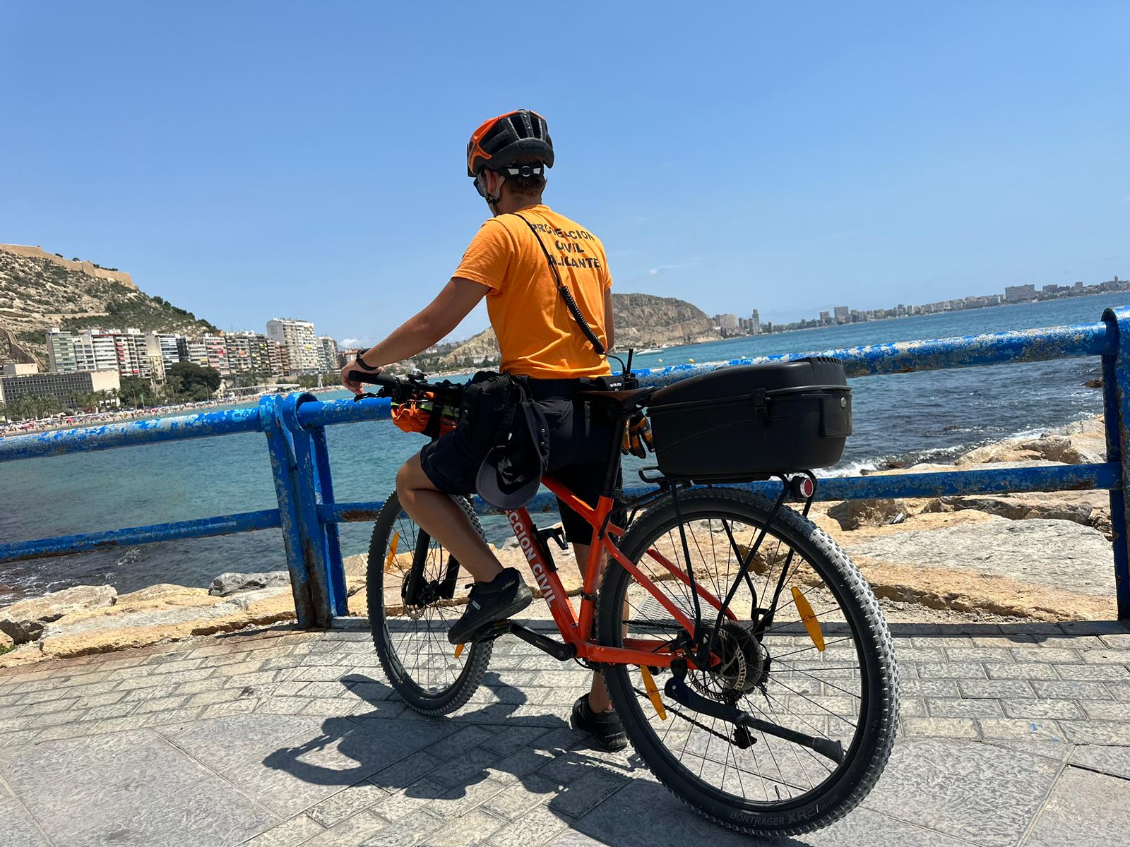 Los voluntarios patrullan en bicicleta por los paseos, con la embarcación por la línea de agua y en la arena todos los días en las cinco zonas de baño del término municipal