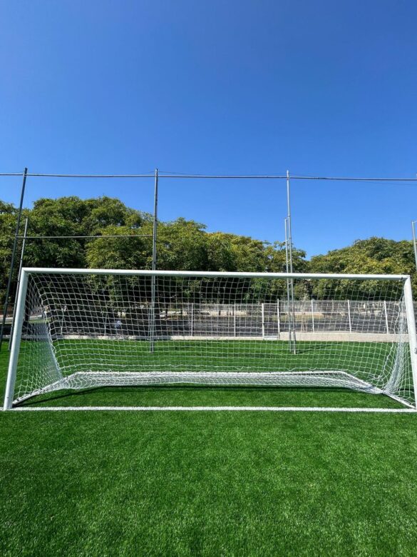 La actuación, realizada por la concejalía de Infraestructuras en coordinación con la de Deportes, ha consistido en el cambio de la hierba sintética, del sistema de riego y las redes de las porterías en el campo de fútbol, así como del césped artificial de las dos pistas de pádel del recinto deportivo.