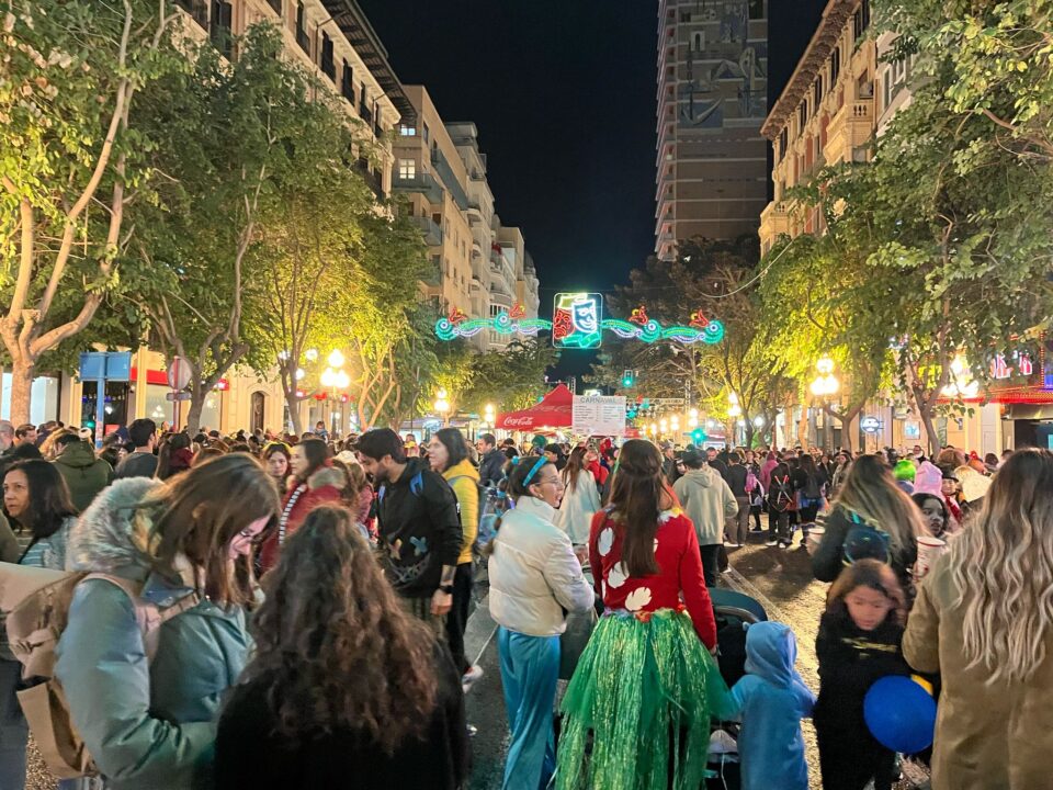 Poco a poco, padres e hijos, llenaron la Rambla para celebrar el carnaval infantil que se inició a las cinco de la tarde con talleres, photo-call y otras actividades para los más pequeños, hasta que llegó el turno del adulto, que arrancó a las 10 de la noche y que se prolongó hasta las cuatro de la madrugada. Un doble escenario musical en la parte superior de la Rambla, a la altura del Banco de España, y otro frente al Portal de Elche, permitieron a los centenares de asistentes disfrutar de la música de Dj que puso Cadena 100 y de la música de orquesta en el escenario del Portal de Elche.