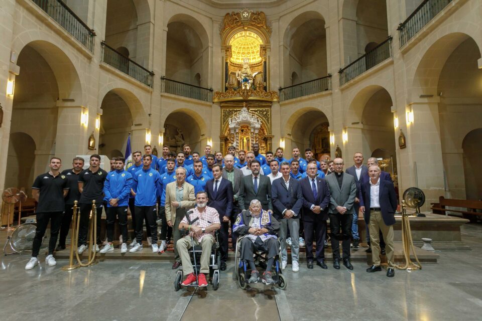 La primera plantilla ha llegado hasta la Concatedral después de que el autobús del equipo, serigrafiado con el escudo y con una alusión al Centenario, haya estacionado en la Plaza del Ayuntamiento. En el vehículo figura inscrita la leyenda “Honor, fortaleza y entrega”, una iniciativa que cuenta con el respaldo del Patronato Municipal de Turismo Alicante City&Beach.
