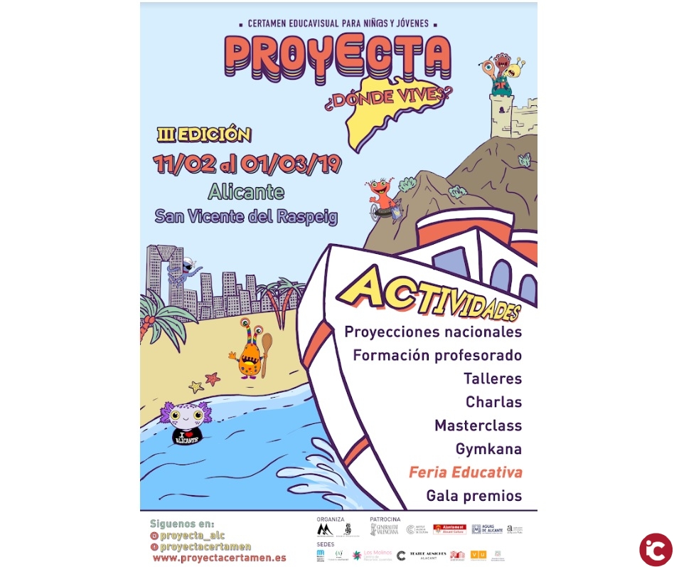 Del 11 de febrero al 1 de marzo va a tener lugar la tercera edición del certamen Proyecta que este año llama la atención del territorio con el lema ¿dónde vives?. En el inicio del curso escolar comenzaron las actividades del certamen con los concursos que abordaban el uso del audiovisual como herramienta en los diferentes cursos desde primaria a bachiller cuyo plazo acabarán el 4 de febrero. Un año más el certamen se tematiza y para poner en valor el territorio con la ayuda de los cinco personajes creados en la edición de 2018. (K3, Pool, Hoogy, Moli y Lili).