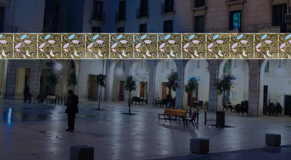 La Plaza del Ayuntamiento volverá a estar iluminada con 50 arco, y provista de tecnología RGB, que va a estar en tonos azules y blancos, que se puede cambiar de colores, y 319.707 leds. La fachada del Ayuntamiento como es tradicional cuenta con un cartel iluminado de FOGUERES 2023 que será encendido para dar comienzo a las fiestas de este año.