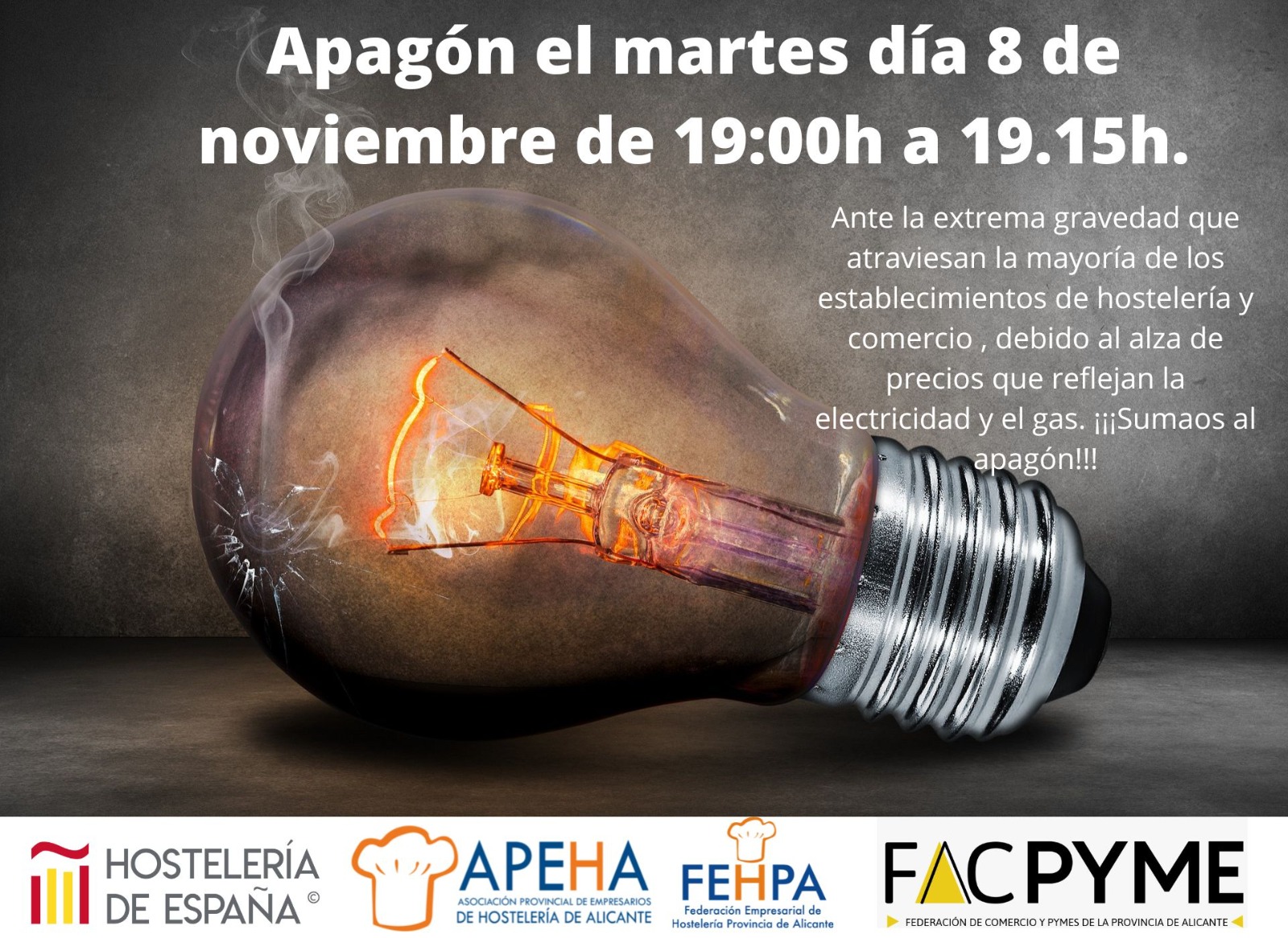 Ante la situación de extrema gravedad que atraviesan los establecimientos de hostelería debido al alza de precios que reflejan la electricidad y el gas, se convoca un apagado de luces simbólico de los establecimientos de la Plaza Mayor como protesta ante el aumento de los costes energéticos. APEHA y FACPYME, se suman a este apagón simbólico. Mañana martes, 8 de noviembre de 19h. 19.15.