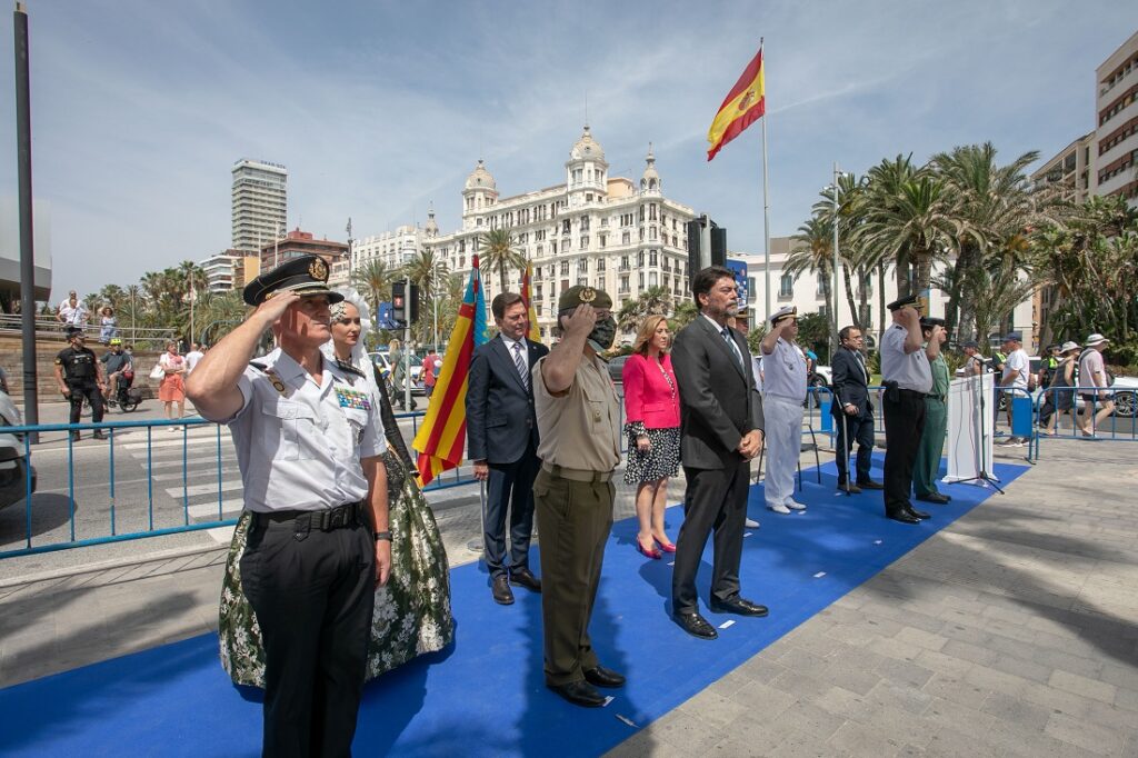 Al acto en homenaje de la Policía Nacional acudieron esta mañana la delegada de Gobierno, Gloria Calero, el concejal de Seguridad, José Ramón González, el jefe superior de Policía Nacional de la Comunidad Valenciana, Jorge Martí, y el jefe Provincial de Policía Nacional, Ignacio del Olmo, así como autoridades civiles y militares y representantes de los empresarios e instituciones de Alicante.