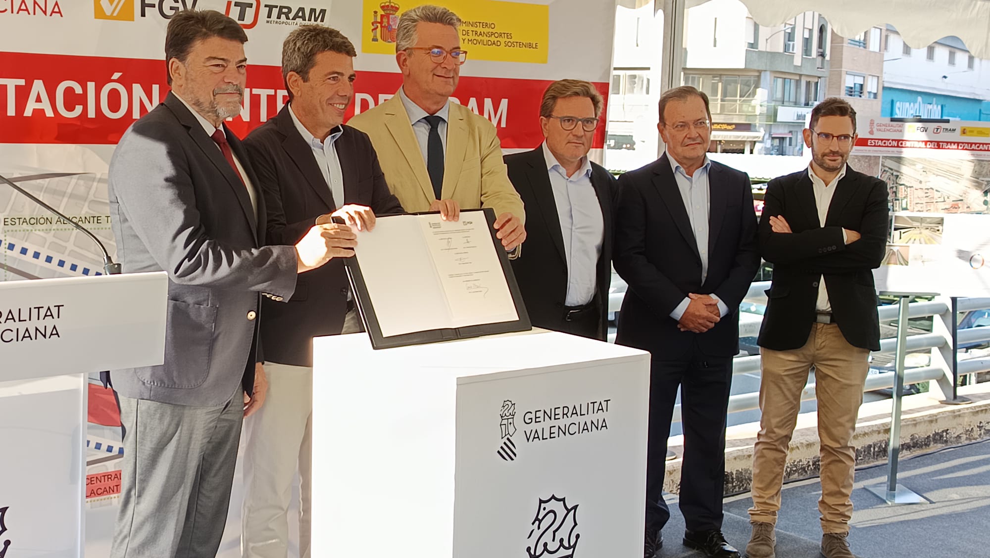 El alcalde de Alicante, Luis Barcala, ha destacado este viernes que el inicio de las obras de la Estación Central del TRAM es “un hito histórico y un nuevo salto en la historia de Alicante, un salto de calidad hacia un nuevo modelo de intermodalidad y hacia una movilidad plural y sostenible”. Barcala se ha manifestado en estos términos durante la firma del acta de replanteo que marca el inicio de las obras de la Estación Central, ejecutadas por la Generalitat. Un acto al que han asistido el presidente de la Generalitat, Carlos Mazón; el conseller de Medio Ambiente, Infraestructuras y Territorio, Vicente Martínez Mus; el subdelegado del Gobierno en Alicante, Juan Antonio Nieves; el presidente de la Diputación de Alicante, Toni Pérez; el director adjunto de construcción de líneas zona este de ADIF, Ángel Contreras; el presidente de Avant, Javier Martínez Barco; y la concejala de Urbanismo, Rocío Gómez, entre otras autoridades.