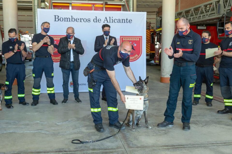 El Servicio de Prevención, Extinción de Incendios y Salvamento del Ayuntamiento de Alicante –SPEIS- han rendido esta mañana un homenaje y despedido a Piba, una de las mejores perras de búsqueda y rescate de la Unidad Canina, que falleció el día 8 de marzo, al fallarle el corazón. Los bomberos han explicado que “casualmente le falló el corazón, eso que ponía en cada entrenamiento, en cada exhibición, en cada búsqueda real, y después en casa para toda su gran familia”.