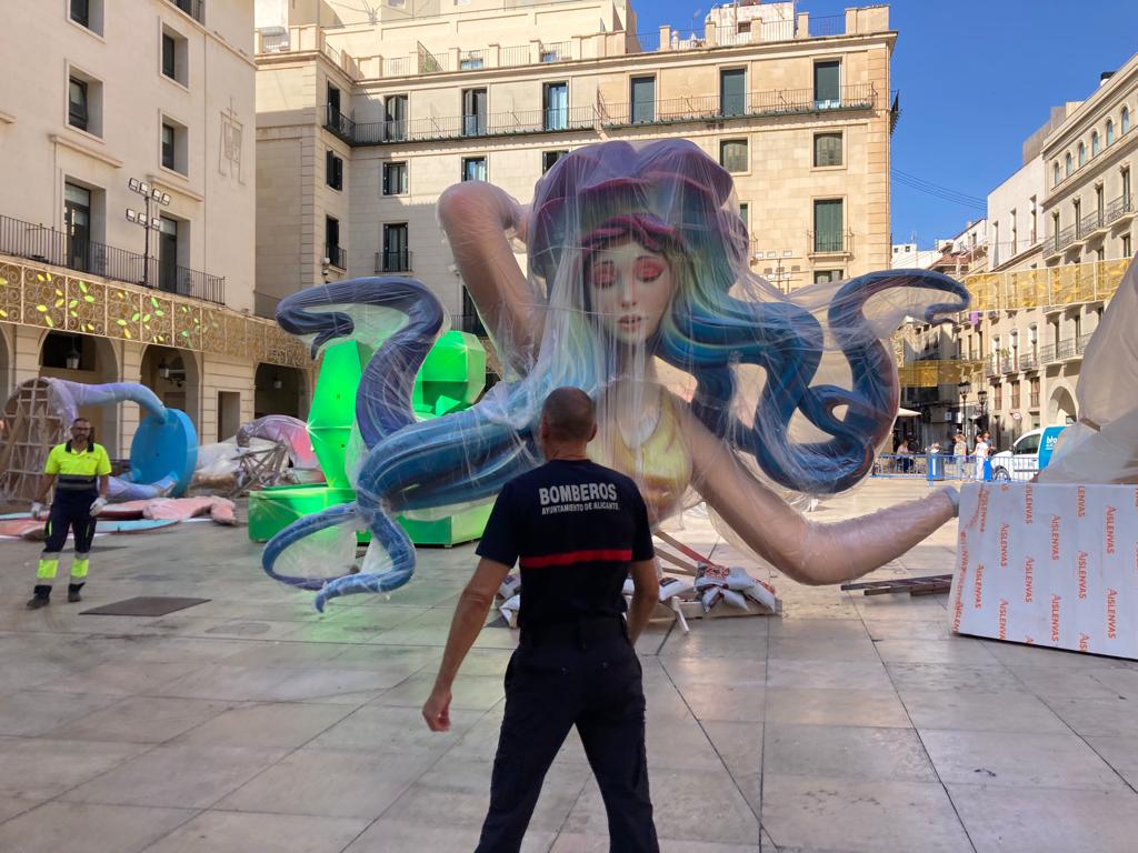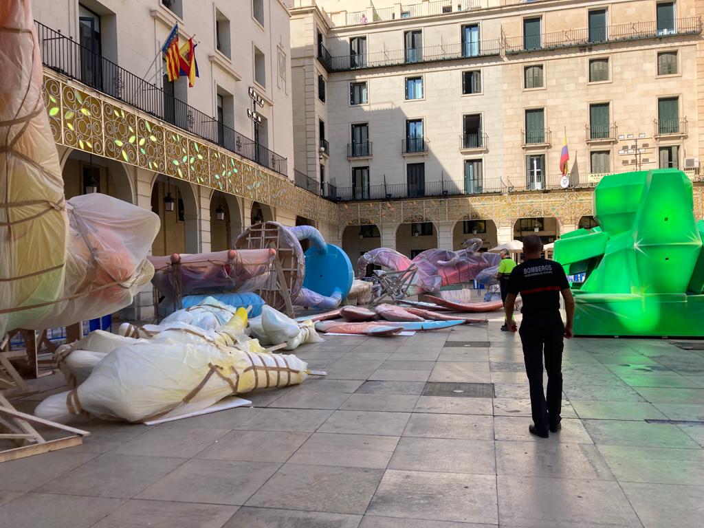 Los Bomberos del SPEIS van a realizar la inspección de la Hoguera Oficial, que ya ha iniciado el acopio e inicio de su plantà, y se revisará la seguridad del monumento, así como su estructura y estabilidad. Comprobando las distancias con ambas fachadas del Ayuntamiento y de la Audiencia, y garantizando la seguridad.