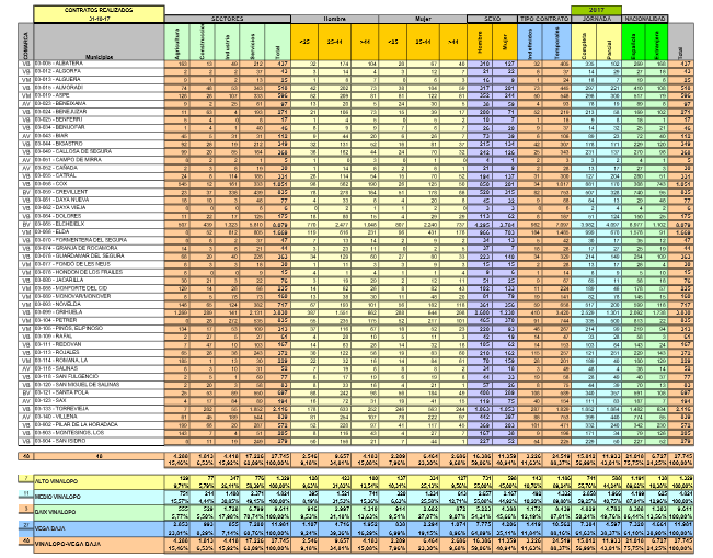 Los datos de contratación se puede observar en las 48 ciudades que componen las Comarcas Vinalopó-Vega Baja.