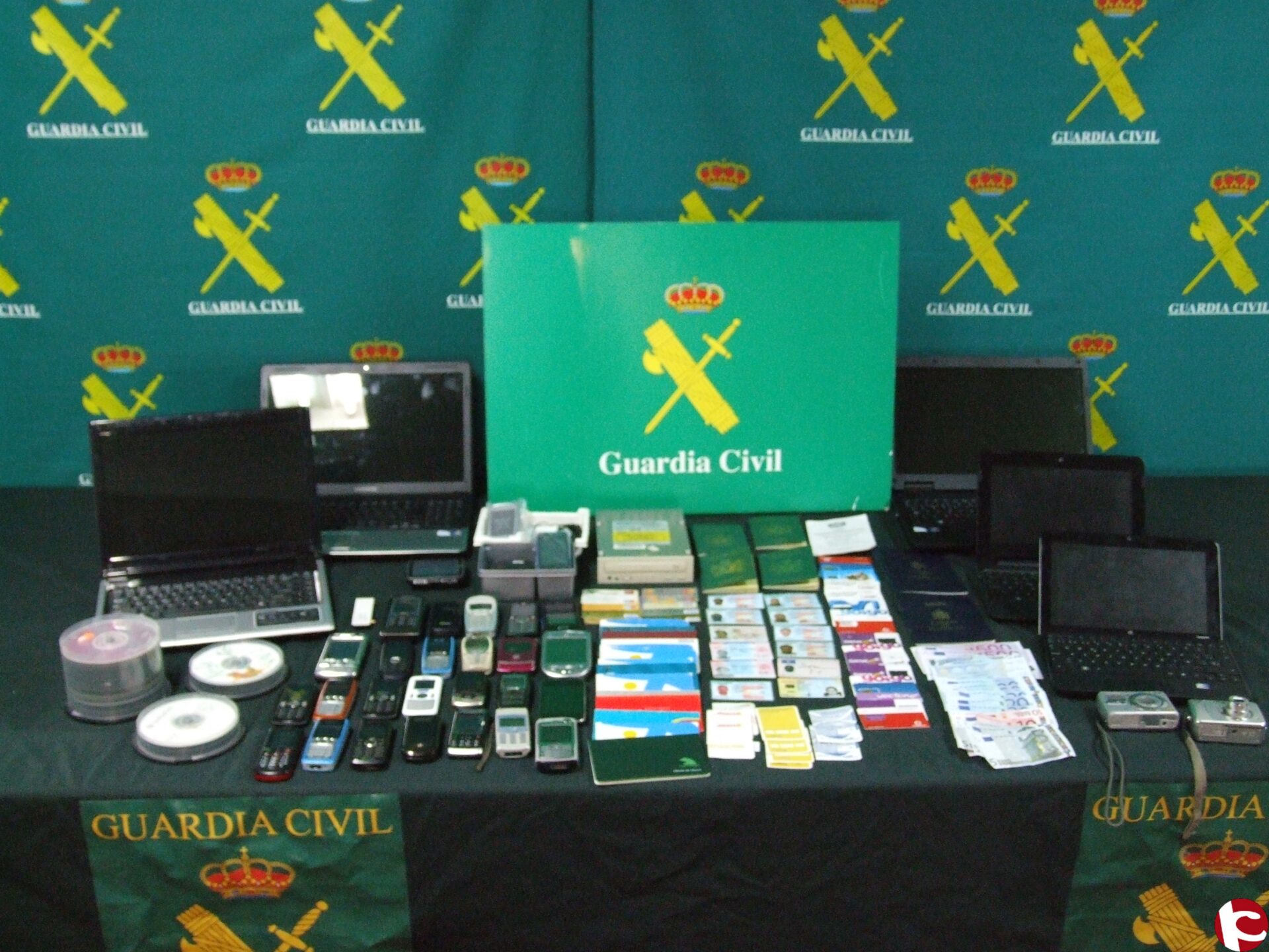 Además de gran cantidad de documentos de identidad falsificados (Tarjetas de Residencia y Pasaportes), programas y medios para su confección además de material informático, cuentas y tarjetas bancarias, dinero en efectivo y numerosa documentación. Los teléfonos móviles y ordenadores incautados son los utilizados en la comisión de estos delitos.