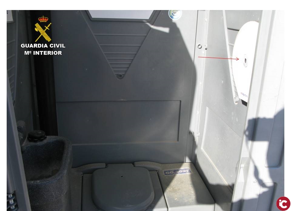 Los agentes del Área de Investigación de la Guardia Civil de Aspe tuvieron conocimiento de una denuncia, formulada por el gerente de una empresa agraria, ubicada en la comarca alicantina del Vinalopó Medio, quien aseguraba que una de las empleadas, mientras hacía uso de un aseo portátil instalado en dicha explotación agraria, se había percatado de la existencia de una pequeña cámara de vídeo, escondida en el portarrollos del papel higiénico.