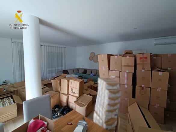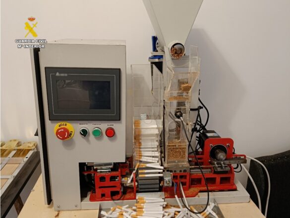 25 de enero de 2024.- La Guardia Civil ha detenido a dos personas por fabricar cigarrillos con tabaco ilegal en una vivienda de Busot (Alicante). En el domicilio, los agentes han encontrado una sorprendente cantidad de tabaco y maquinaria para su fabricación. Los productos ilícitos se enviaban principalmente a Polonia y Alemania. Los detenidos, se enfrentan a cargos de contrabando, propiedad intelectual, contra la hacienda pública, contra la salud pública, falsificación de documentos y blanqueo de capitales.