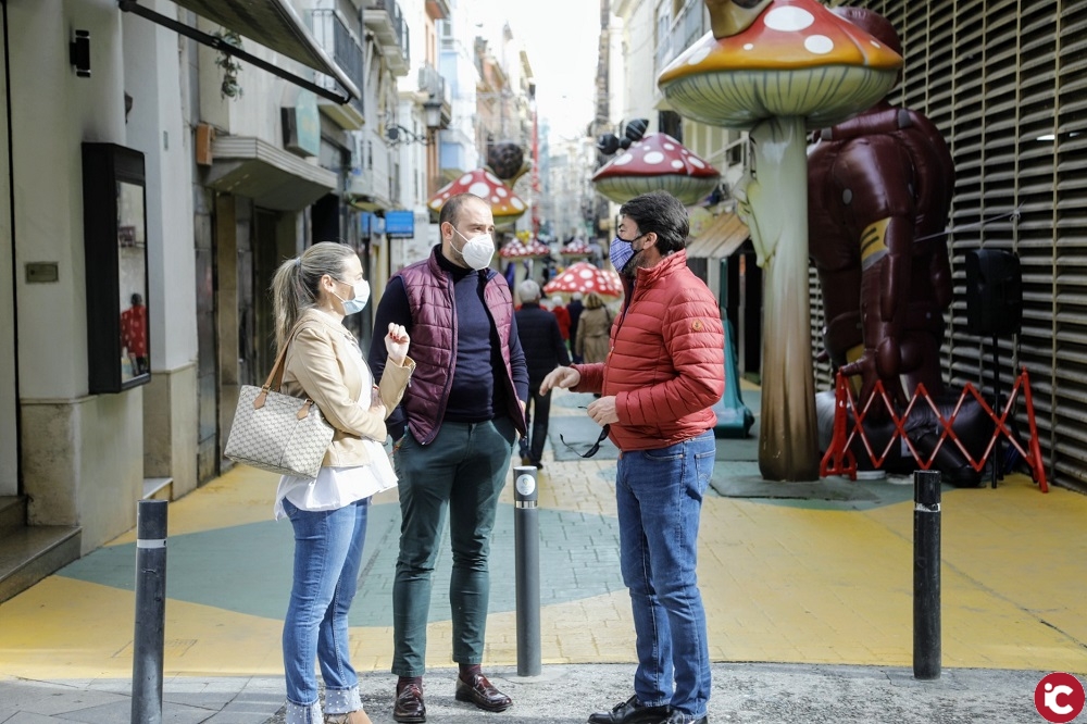 El alcalde ha visitado esta mañana los comercios de la calle San Francisco con motivo de la celebración de la décimo segunda edición de ‘Botigues al Carrer’, promovida por la Asociación Más que Centro y Corazón de Alicante, con la colaboración municipal. Le han acompañado la concejala de Comercio y Gastronomía, Lidia López, y el de Fiestas y Participación Ciudadana, Manuel Jiménez, junto a los representantes de ambas entidades.