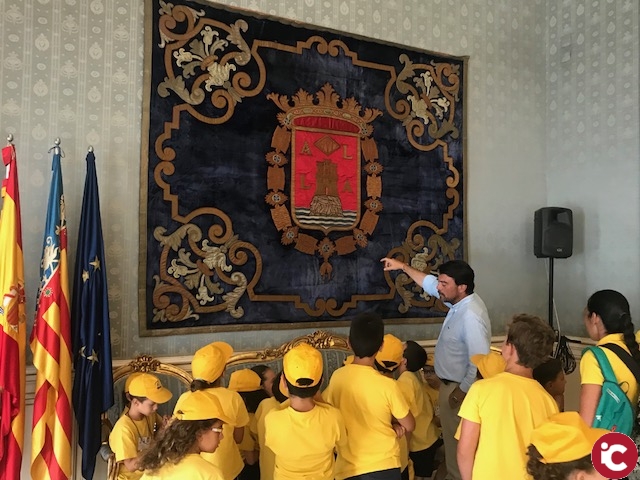 Los niños/as de entre 5 y 12 años han realizado hoy en el marco del programa de actividades previstas en su escuela de verano un recorrido por el Ayuntamiento de Alicante que ha contado con la presencia del primer edil.