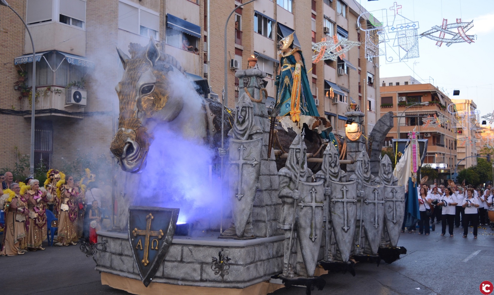 Mas de millar de festeros, entre capitanes, miembros de las comparsas, boatos y músicos, han tomado parte esta noche en la Entrada Cristiana de los Moros y Cristianos del barrio de Altozano, según la evaluación de Juan de Dios Bermúdez, presidente de la asociación que gestiona estas fiestas.