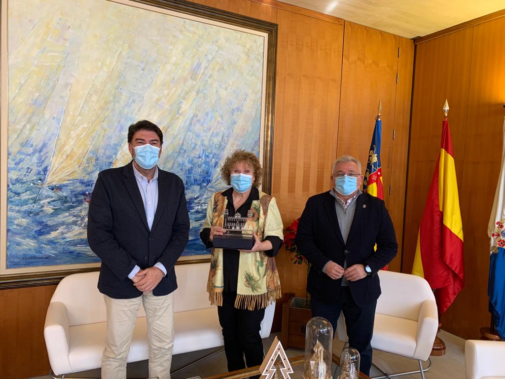 La comisaria de la exposición 175 años del Teatro Principal de Alicante, Juana María Balsalobre, ha sido recibida este martes por el alcalde, Luis Barcala, y el concejal de Cultura, Antonio Manresa, en Alcaldía.