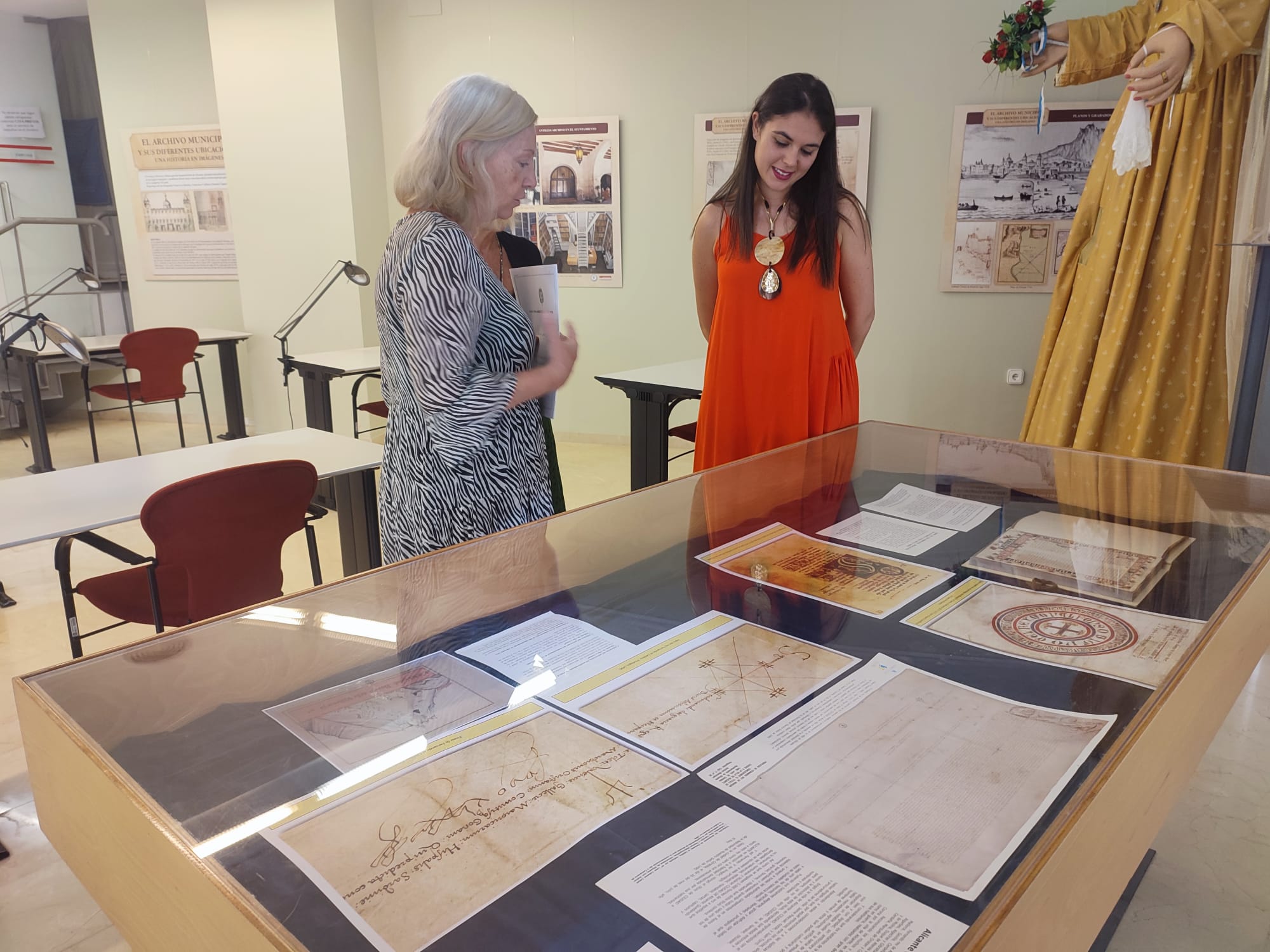 El Archivo Municipal de Alicante conmemora este miércoles el 533 aniversario del nombramiento de Alicante como ciudad con la inauguración de una exposición sobre las diferentes ubicaciones de esta dependencia del Ayuntamiento que custodia la historia de la capital alicantina. El acto ha contado con la asistencia de la concejal de Cultura Nayma Beldjilali, que ha seguido con interés las explicaciones de la responsable del Archivo, Susana Llorens, sobre los documentos facsímiles de los reyes Alfonso X el Sabio (siglo XIII) y de Fernando el Católico y el privilegio de concesión de título de ciudad a la villa de Alicante de 26 de julio de 1490 que se muestran en la vitrina plana de la sala de investigación de la planta baja y cuyos originales se custodian en sus depósitos documentales.