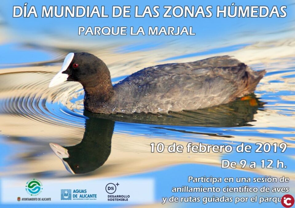 Alicante. Sábado, 9 de febrero, 2019. La concejalía de Medio Ambiente del Ayuntamiento de Alicante, dirigida por el edil Israel Cortés, y Aguas de Alicante se suman a la celebración del Día Mundial de los Humedales 2019, con una jornada abierta al público de anillamiento de aves y rutas ornitológicas guiadas, que tendrá lugar mañana domingo en el Parque La Marjal.