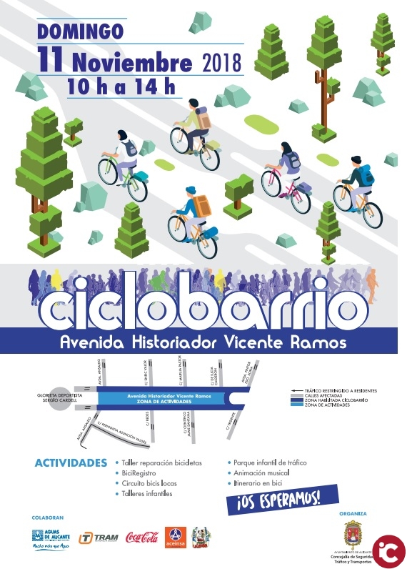 En este Ciclobarrio van a colaborar las siguientes entidades y empresas: TRAM Alicante, Vectalia, Aceinsa Levante S.A, Coca Cola y Aguas Municipalizadas de Alicante.
