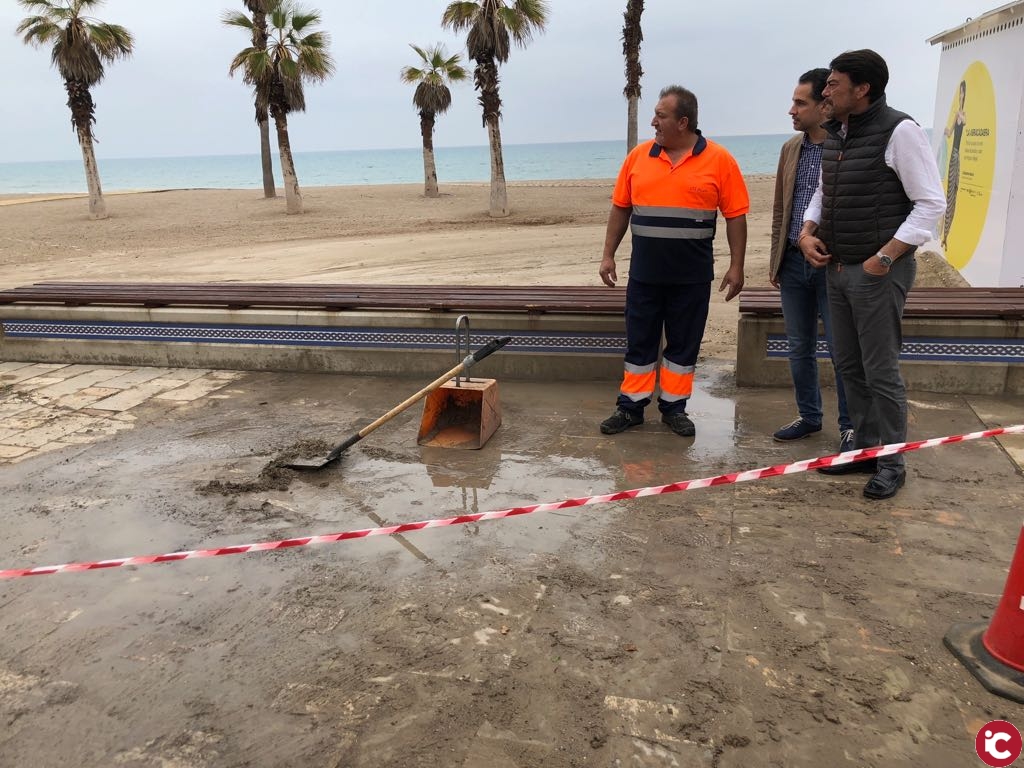 En la playa de San Juan, a la altura de la Avenida de Niza, también se han producido daños y durante todo el día los técnicos trabajarán para devolver la normalidad a la zona.