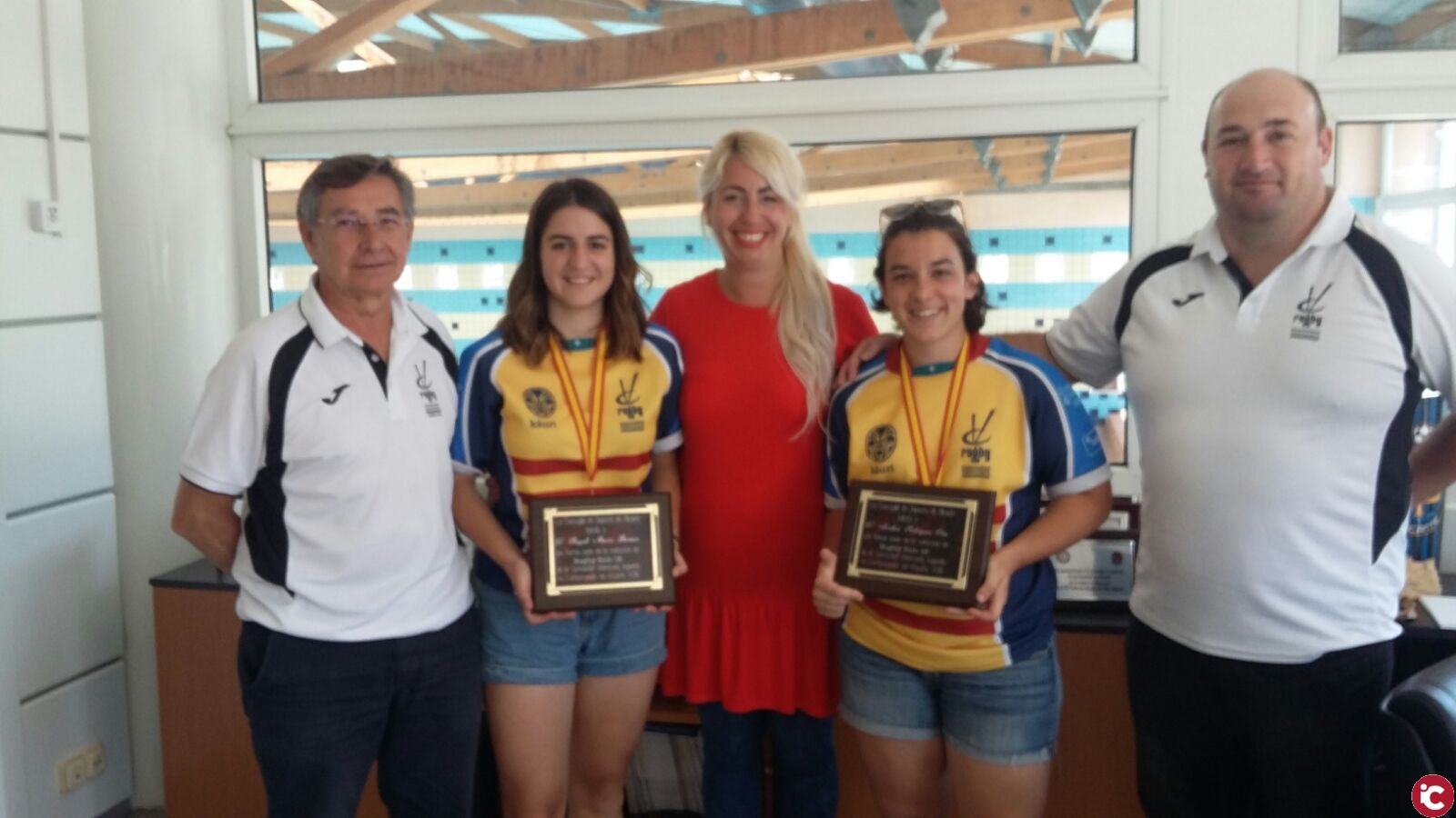 Alicante a 28 de mayo de 2018. La concejala de Deportes del Ayuntamiento de Alicante, Marisa Gayo ha recibido esta mañana en las instalaciones de la concejalía a dos campeonas de España de Rugby del Club Akra Bárbara Rugby Alicante: Raquel Marín y Ahinoa Rodríguez que han ganado el campeonato nacional femenino de Rugby Sub-18.