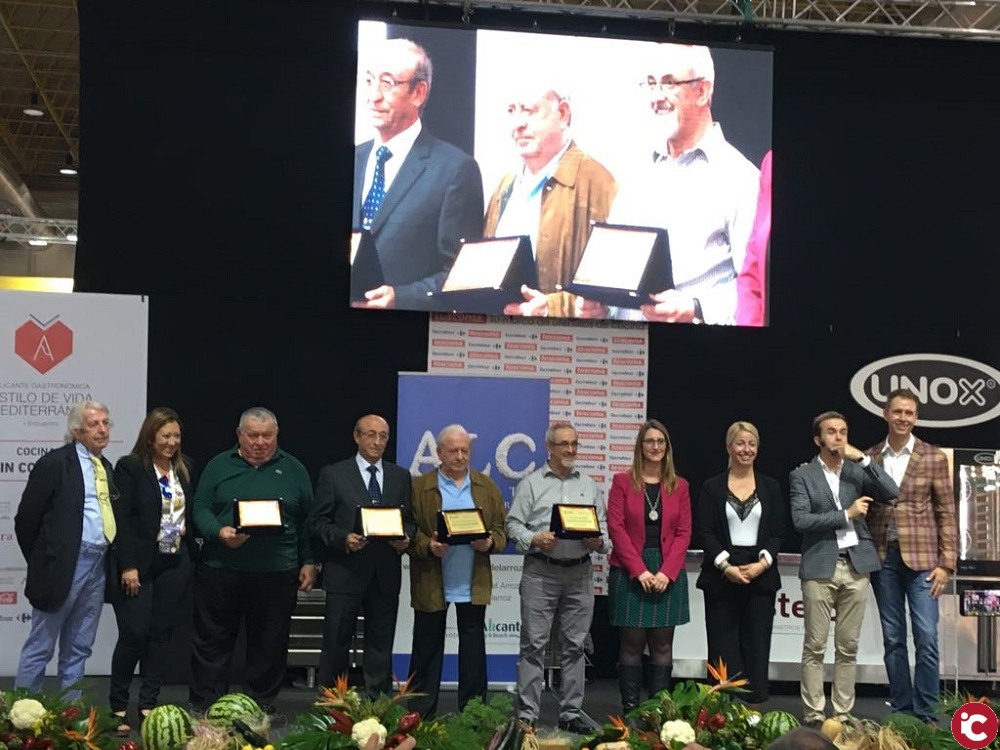 El Ayuntamiento de Alicante a través de la Concejalía de Comercio y Hostelería que ocupa la edil popular Marisa Gayo, ha hecho entrega de distintivos a cuatro chefs alicantinos en reconocimiento a su trabajo, esfuerzo y dedicación en la elaboración de arroces típicos de Alicante. El acto ha tenido lugar en el stand que el Consistorio tiene junto al CDT y la Generalitat Valenciana en la feria Alicante Gastronómica que se celebra estos días en IFA.