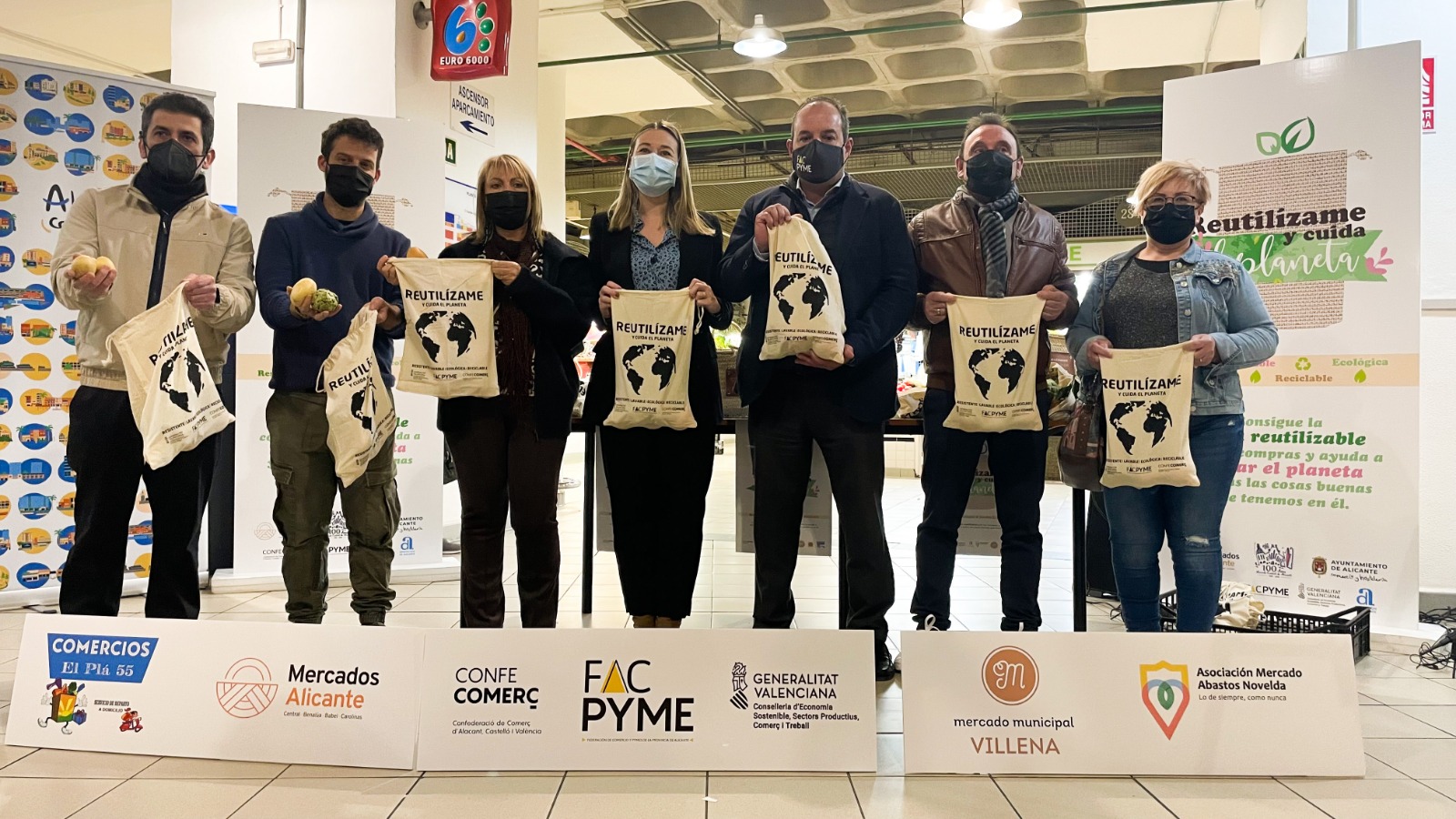 La acción, prevé distribuir 9.000 bolsas reutilizables entre los clientes para las compras en los mercados Central, Babel, Carolinas y Benalúa de Alicante y las Galerías de Alimentación Inmaculada del Pla de Alicante, que se suman a la iniciativa para fomentar medidas sostenibles que ayuden al planeta y se promueva en reciclaje, un consumo mejor cuidando los recursos naturales.