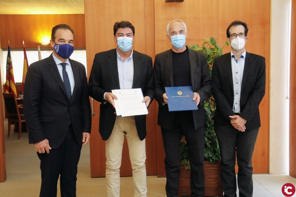 Alicante, 29 de junio de 2021. El alcalde de Alicante, Luis Barcala, y el presidente de la Fundación Internacional Metrópoli para la Innovación y Diseño del Territorio, Alfonso Vegara, han suscrito hoy un protocolo de intenciones con el propósito de emprender colaboraciones en el ámbito de las ciudades y los territorios.
