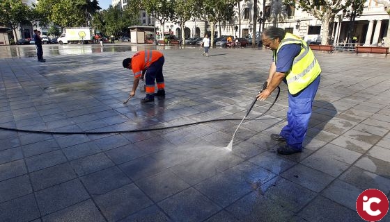 A las labores de limpieza se dedican cada día 18 operarios, 4 cubas, 2 barredoras, una fregadora, 3 apoyos mecanizados y 1 camión en el servicio de limpieza del centro.