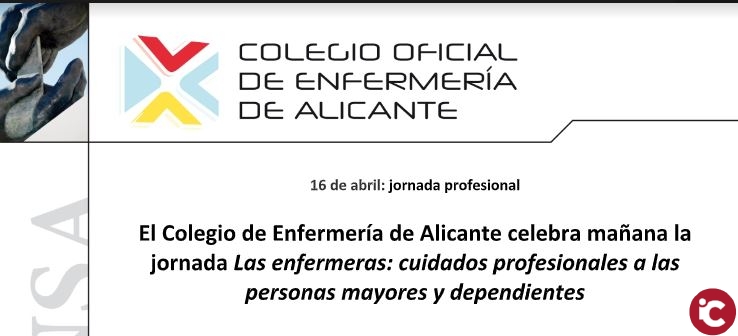 El salón de actos del Banco Sabadell de Alicante (Av. Oscar Esplá, 35) va a acoger mañana martes, 16 de abril, una jornada profesional organizada por el Colegio de Enfermería de Alicante sobre el papel de las enfermeras en el espacio sociosanitario. Una jornada abierta al público en general que llevará por título Las enfermeras: cuidados profesionales a las personas mayores y dependientes y en la cual se contará en el acto de apertura con la presencia de, entre otros, la consellera de Sanidad Universal y Salud Pública, Ana Barceló, y de la vicepresidenta 1ª del Consejo General de Enfermería, Pilar Fernández.