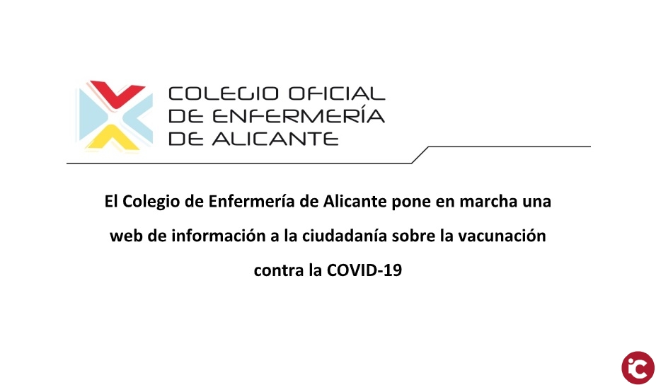 El Colegio de Enfermería de Alicante ha puesto en marcha una iniciativa dirigida a la ciudadanía consistente en una web que desde la dirección www.enferalicante.org/vacunacovid19/ pretende ser un espacio de información y consulta sobre la vacunación de la COVID-19 causante de la actual pandemia.