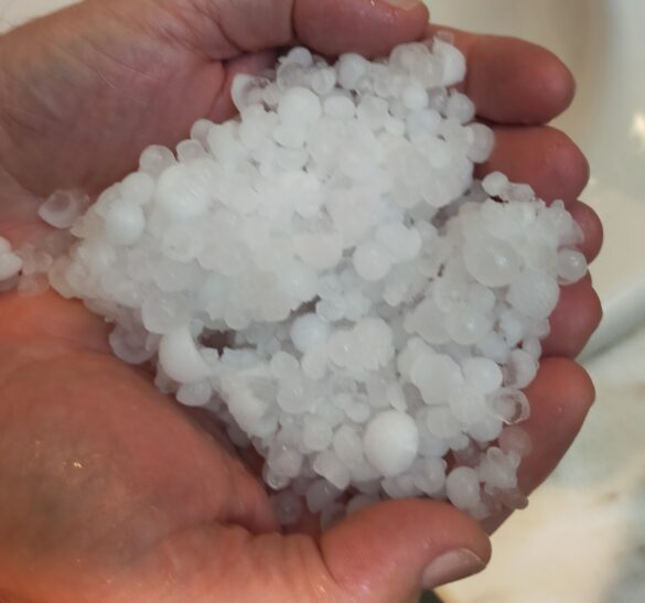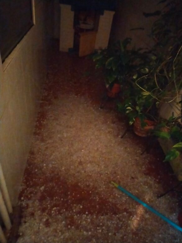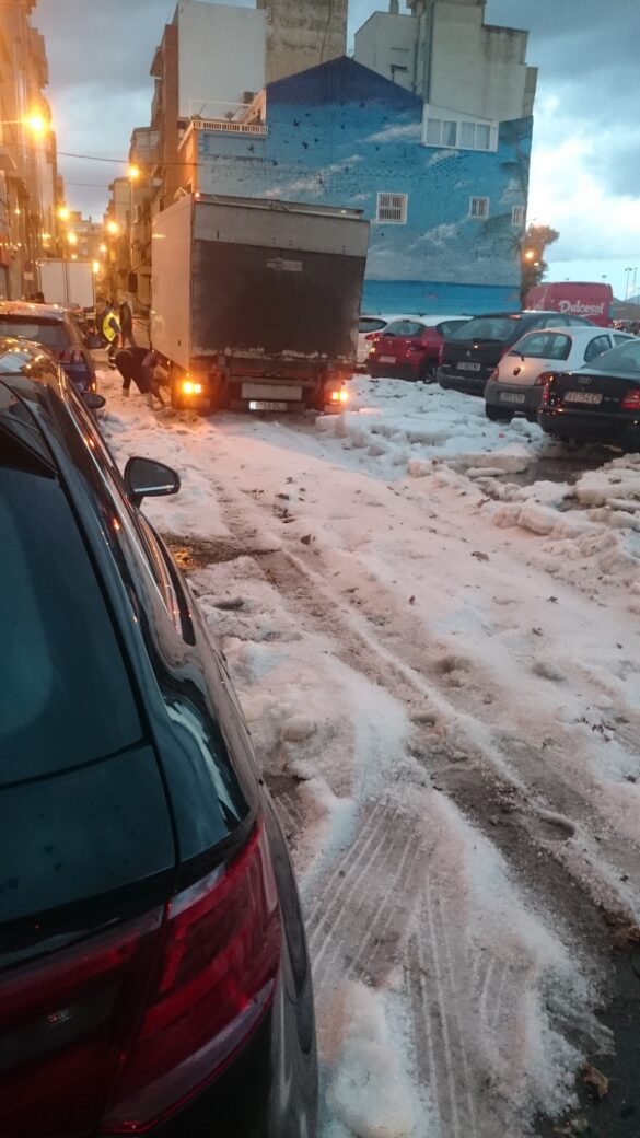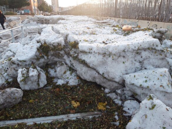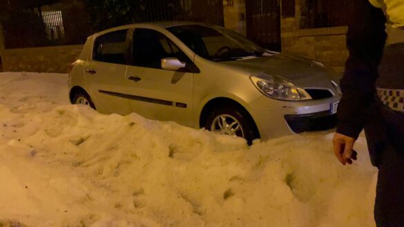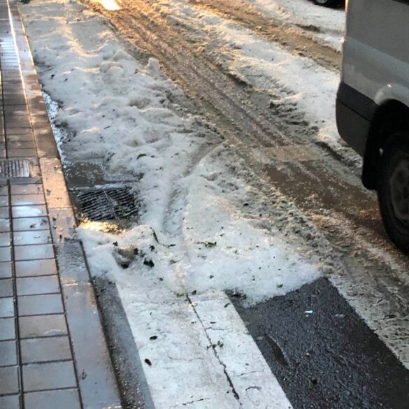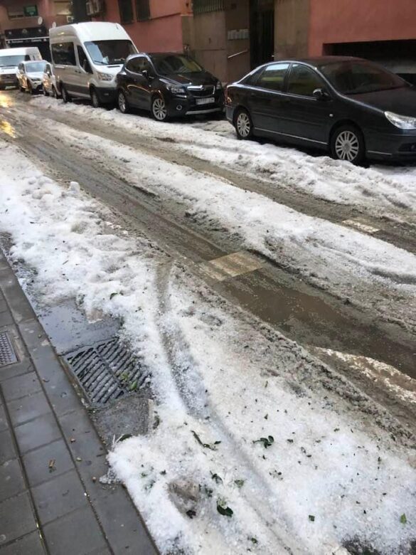 La madrugada del lunes al martes ha estado protagonizada por el granizo, el fuerte viento y la lluvia. El granizo ha estado especialmente presente en la capital de la provincia y en poblaciones cercanas. Además, el viento y la fuerza del temporal han causado estragos, afortunadamente tan solo materiales, en distintos establecimientos. El manto de granizo todavía era visible a primera hora de la mañana, llegando a parecer un manto de nieve.