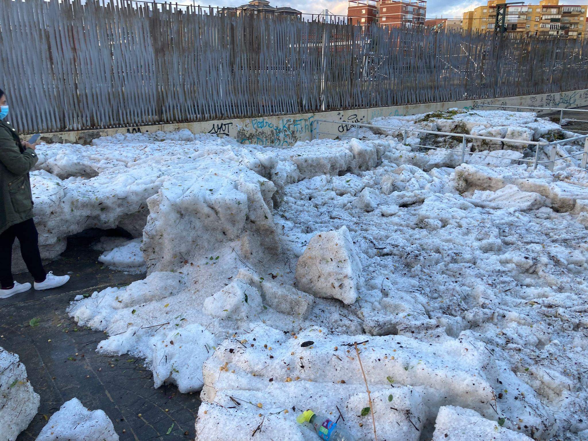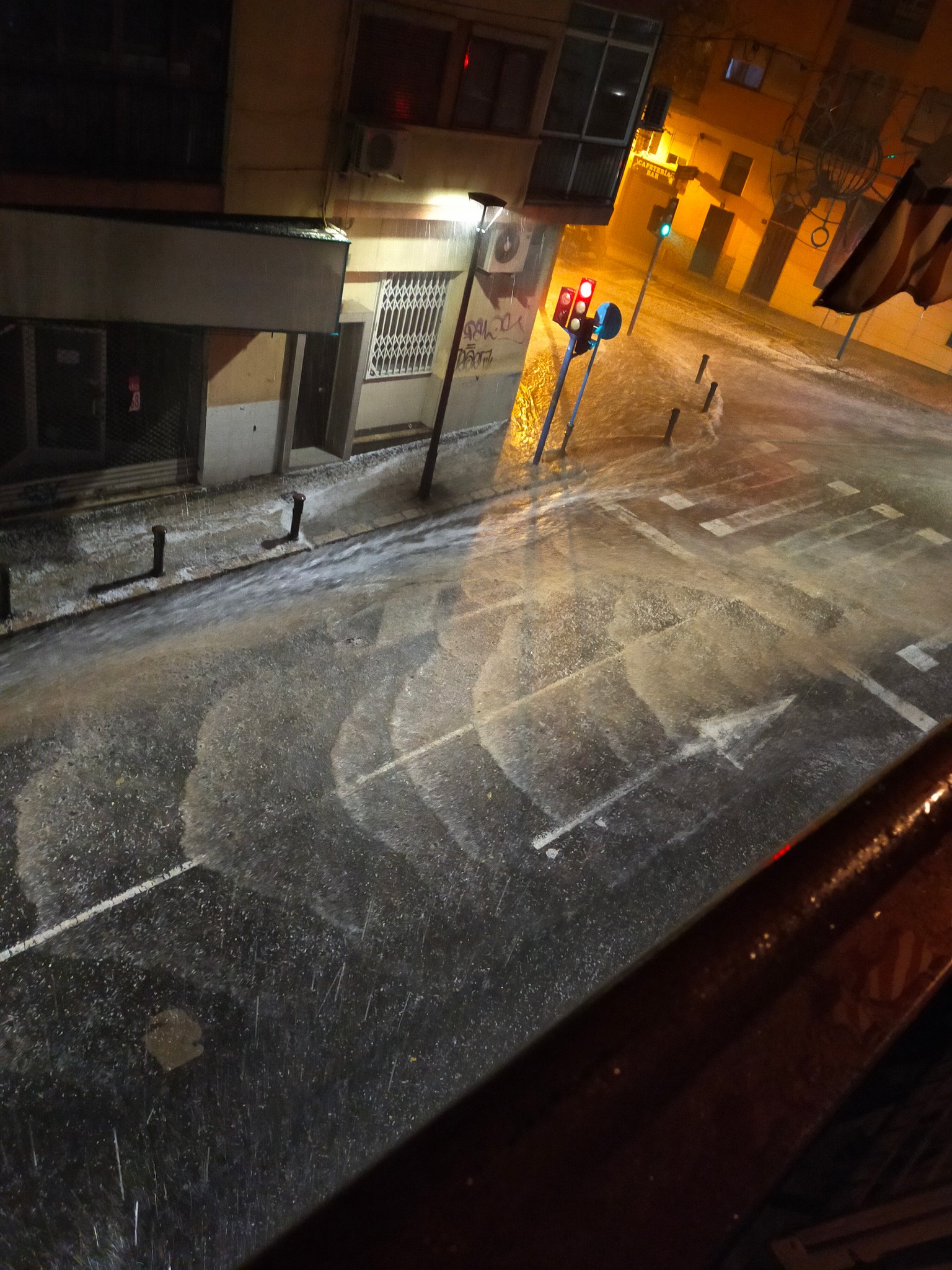La madrugada del lunes al martes ha estado protagonizada por el granizo, el fuerte viento y la lluvia. El granizo ha estado especialmente presente en la capital de la provincia y en poblaciones cercanas. Además, el viento y la fuerza del temporal han causado estragos, afortunadamente tan solo materiales, en distintos establecimientos. El manto de granizo todavía era visible a primera hora de la mañana, llegando a parecer un manto de nieve.