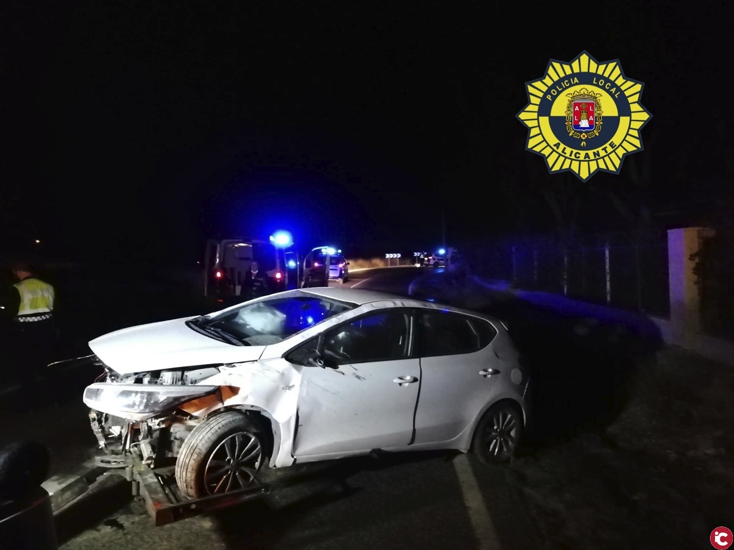 La Policía acudió sobre las 22.00 horas, a la carretera de La Alcoraya, donde un turismo, al trazar una curva, perdió el control y se salió a la cuneta dando una vuelta de campana, resultado el conductor ileso, al someterlo a la prueba de alcoholemia, se obtuvo un resultado positivo, por lo que se han instruido diligencias judiciales.