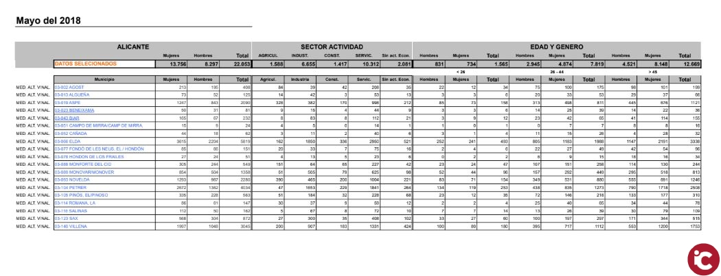 Los datos del paro del mes de mayo finalizan con cerca de 22.053 parados registrados, según los datos publicados hoy por el Servicios Públicos de Empleo (SERVEF), en nuestra unión comarcal Muntanya-Vinalopo-Vega Baja en la zona del Medio Alto Vinalopo esta cifra supone un descenso mensual de 742 personas con respecto a abril. UGT valora el descenso del desempleo positivamente pero siempre hay que tener en cuenta que nos encontramos con el inicio de la temporada estival que refleja un impulso de la contratación es los meses estivales. Desde nuestra entidad seguimos creyendo en que es necesario que se abra un proceso de diálogo para lograr un Plan de Recuperación Laboral que potencie el empleo de calidad, la formación y se garantice una protección por el desempleo más amplia.