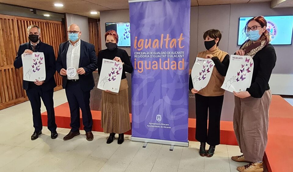 El vuelo de las mariposas se convierte este año en la imagen y el símbolo contra la violencia machista en Alicante. La concejala de Igualdad, María Conejero, ha presentado este lunes el cartel ganador del concurso municipal para ser la imagen del 25N que lleva por lema “Volamos Juntas”, “Volem Juntes”.